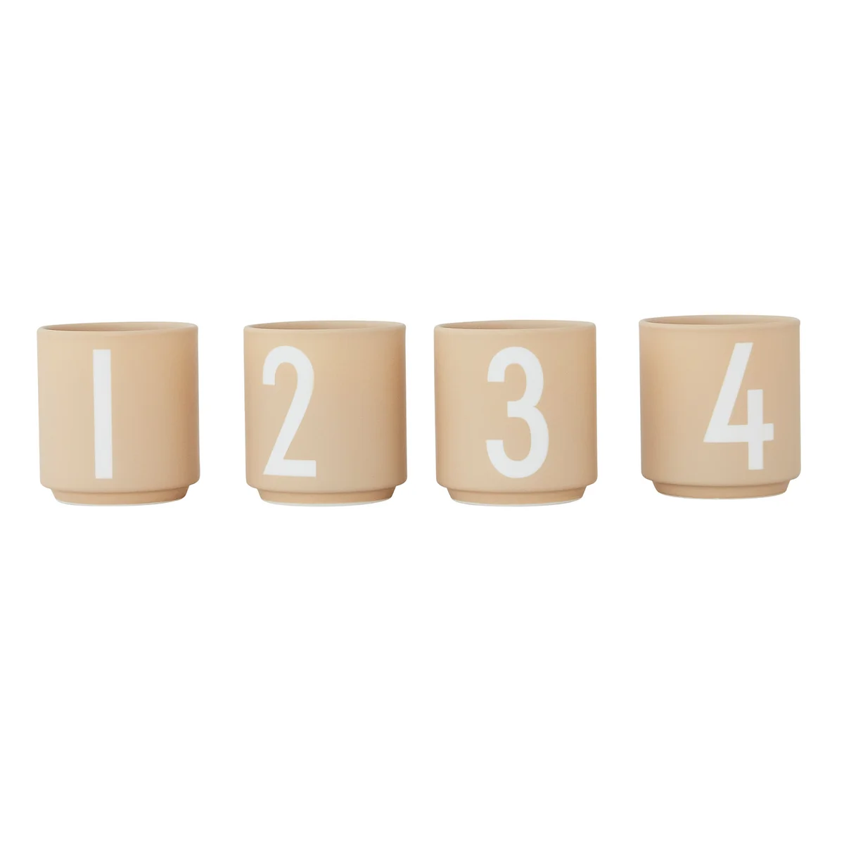 Les chiffres frappants qui ornent les tasses ont été conçus par le designer danois Arne Jacobsen en 1937. Initialement destinés au lettrage interne de l'hôtel de ville d'Aarhus, les lettres, chiffres et caractères ornent aujourd'hui divers textiles de maison, articles de table et ustensiles de bureau de Design Letters . Un design moderne et ludique pour les acrobates des mots, les amateurs de graphisme et de design.