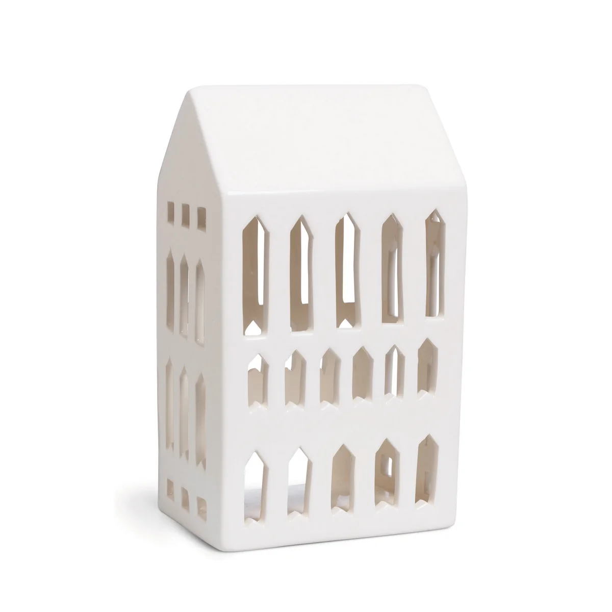 Les Urbania maisons pour bougies à chauffe-plat de Kähler Design sont des porte-bougies à chauffe-plat en céramique avec des fenêtres sculptées à la main à travers lesquelles brille une agréable lumière de bougie. De formes architecturales variées, les porte-bougies à réchaud de Mette Bache et Barbara Bendix Becker attirent particulièrement l'attention sur chaque rebord de fenêtre.