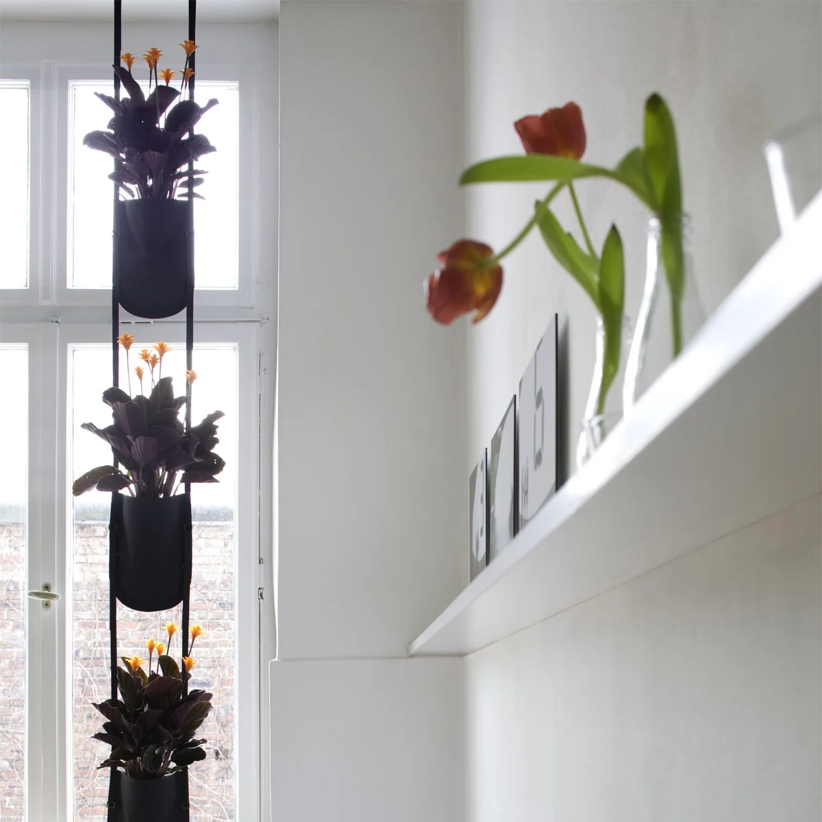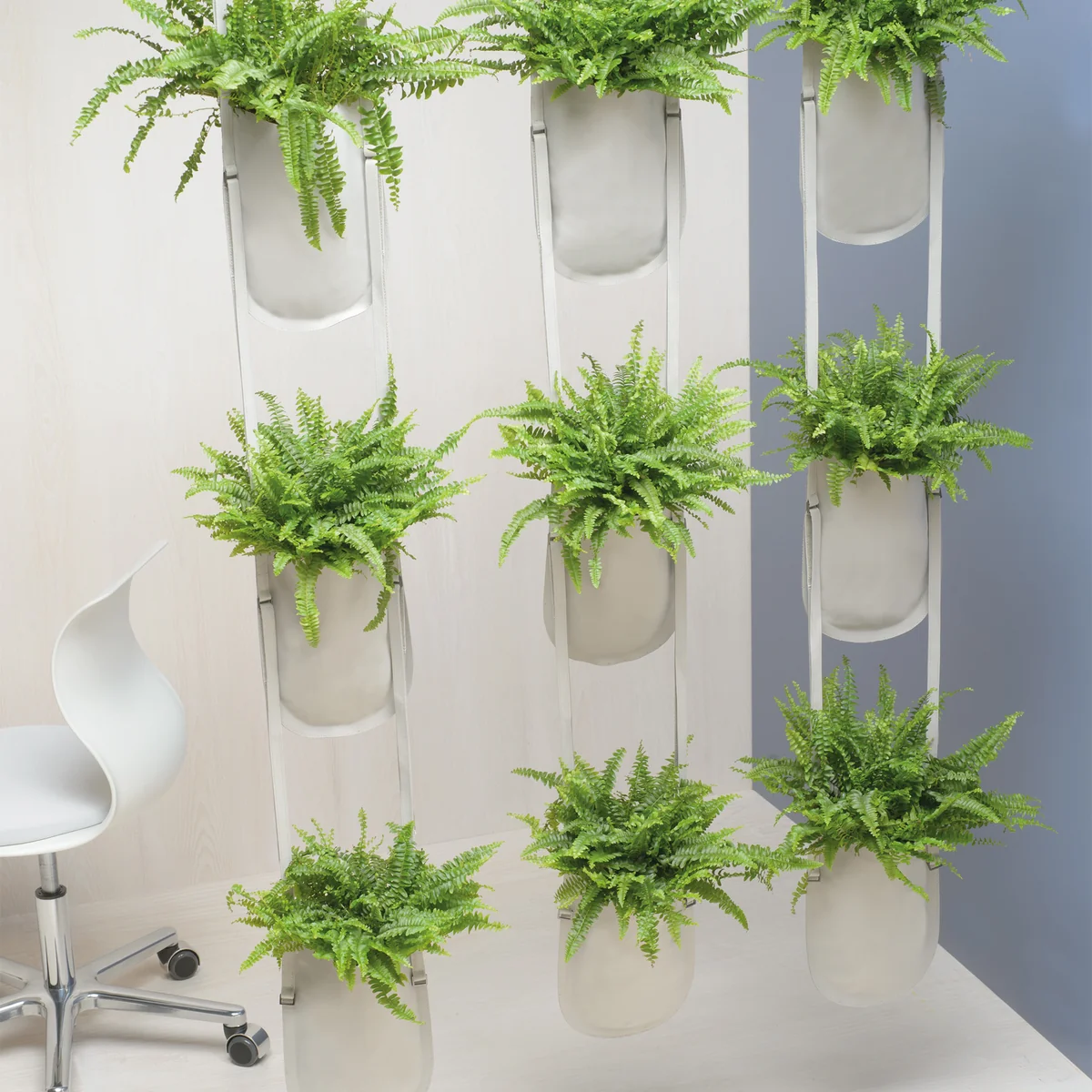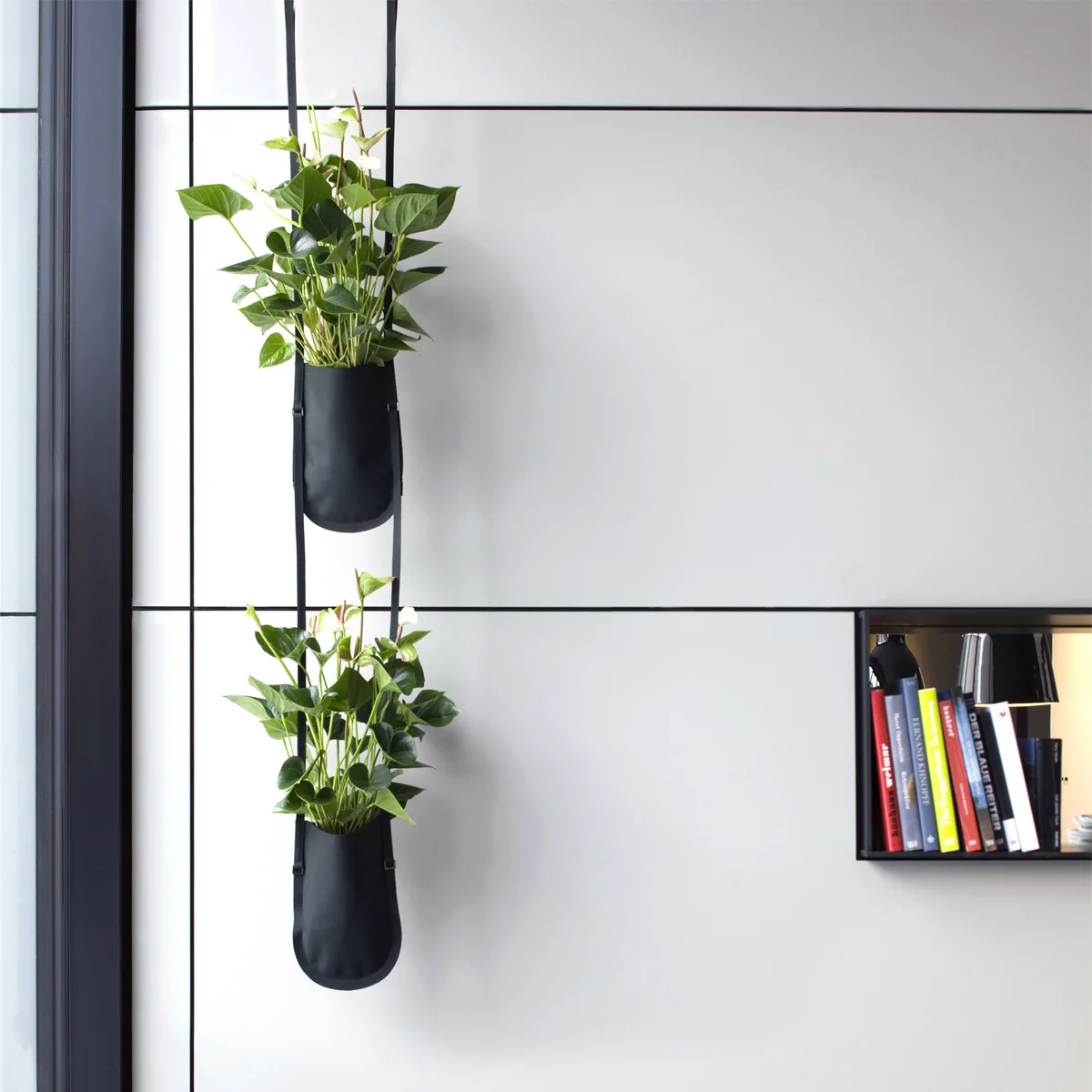 Jusqu'à cinq sacs de plantation peuvent être suspendus les uns aux autres pour créer une séparation de pièce, par exemple. Le support mural spécialement conçu pour Urban Garden