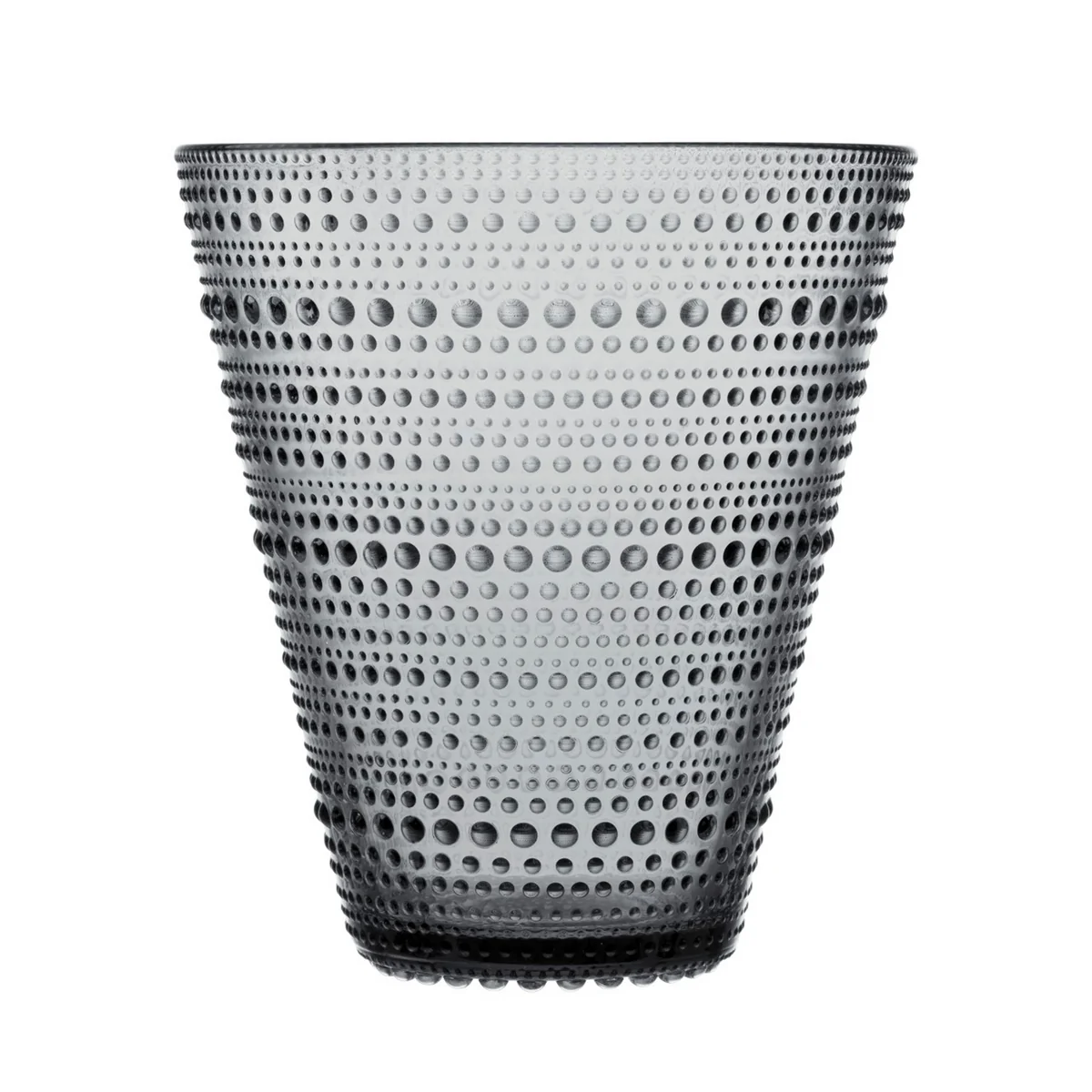 Le design Kastehelmi fut déjà influencé en 1964 par le designer de verrerie finlandais Oiva Toikka et convainc depuis par sa beauté naturelle. Kastehelmi signifie gouttes de rosée et décrit parfaitement le motif du vase.
