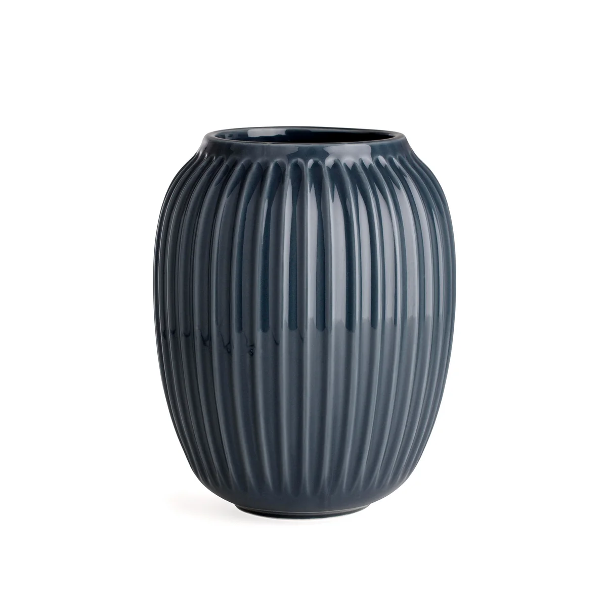 Les impressionnants vases de Kähler Design avec le motif caractéristique des rainures appartiennent à la série conçue par Hans-Christian Bauer. Hammershøi série conçue par Hans-Christian Bauer. Pour les vases et l'ensemble de la série, Bauer s'est inspiré des vases volumineux de Svend Hammershøi vases, qu'il a créés dans l'atelier Kähler vers 1900.