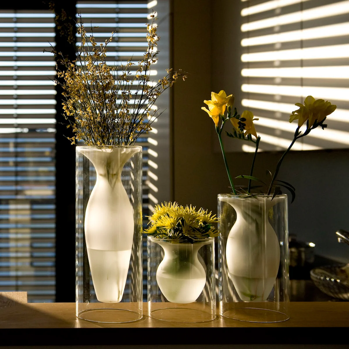 Avec Esmeralda Les compositions florales sont habilement mises en valeur. Le vase est disponible en différentes tailles, qui peuvent être parfaitement combinées les unes avec les autres. Ainsi, le bon vase est toujours disponible pour différents bouquets. Grâce à leur aspect inhabituel, ces vases constituent un objet de décoration attrayant pour n'importe quelle pièce, même sans fleurs.