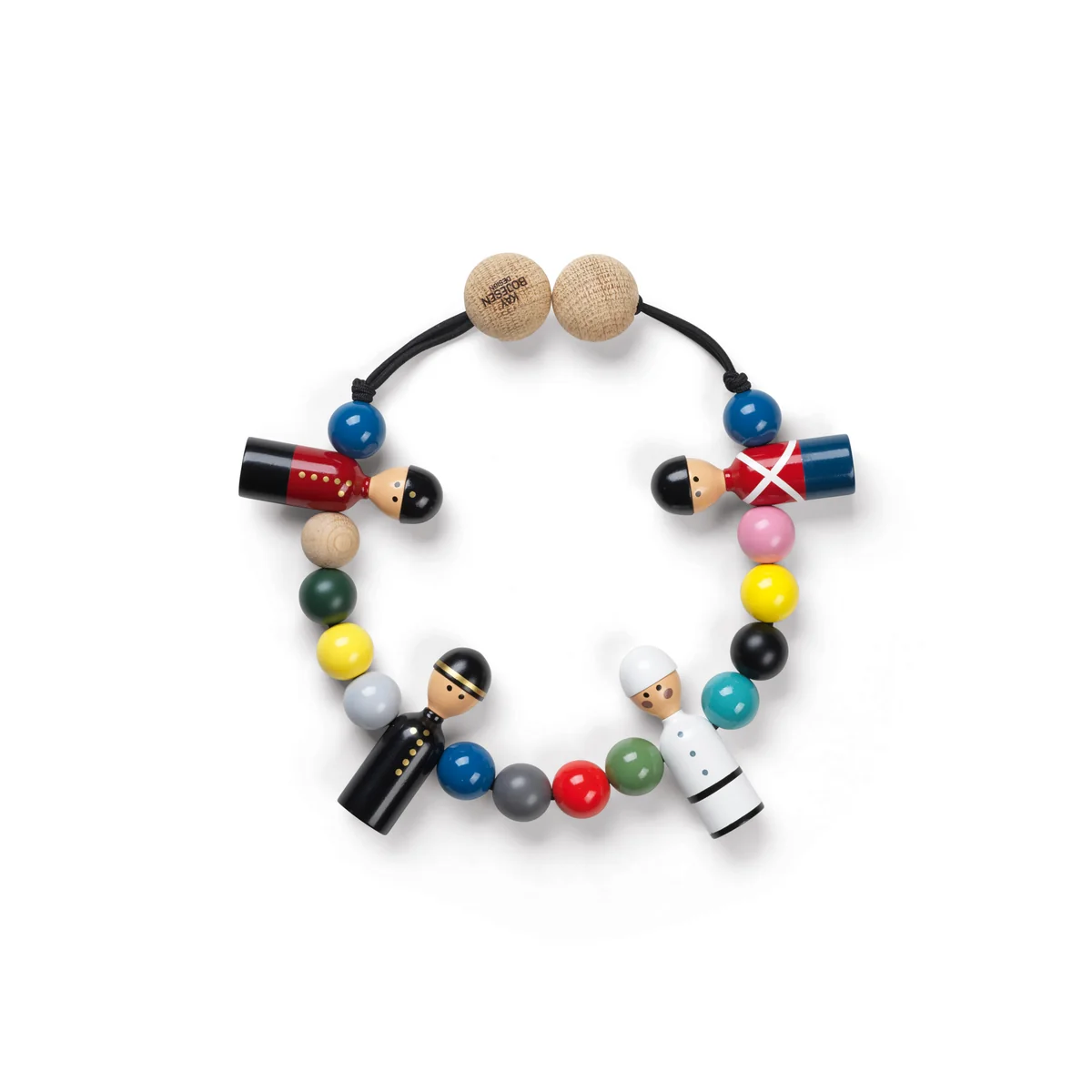 Avec la chaîne pour poussette de Kay Bojesen , le landau peut être décoré avec encore plus d'amour. Les perles en bois et les jolies figurines sont de couleurs vives et font en sorte que les petits s'amusent beaucoup ! Grâce à la simplicité de sa construction, la chaîne est facile à fixer au landau et convient à tous les types de poussettes.