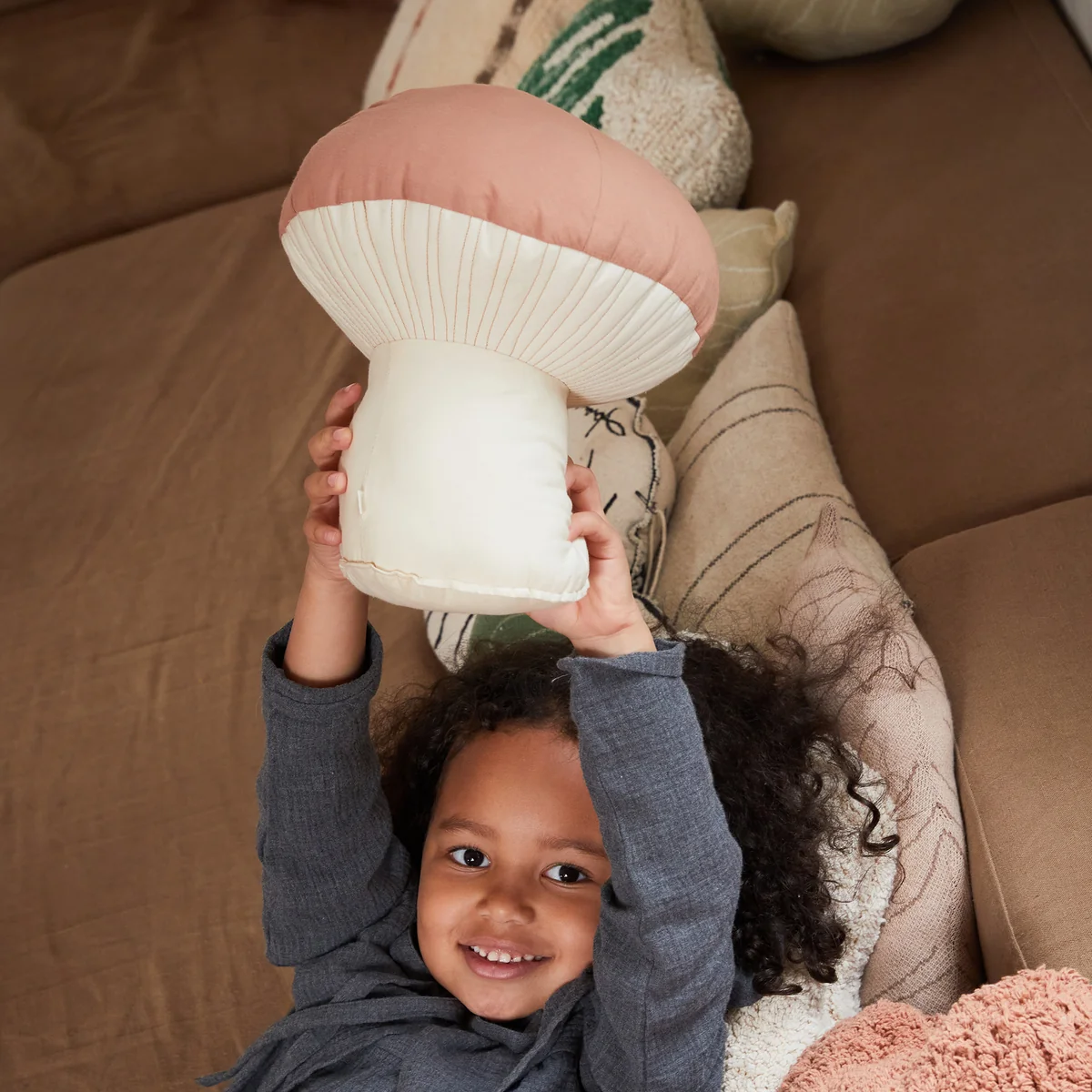 Coussin ludique en forme d'amanite tue-mouches