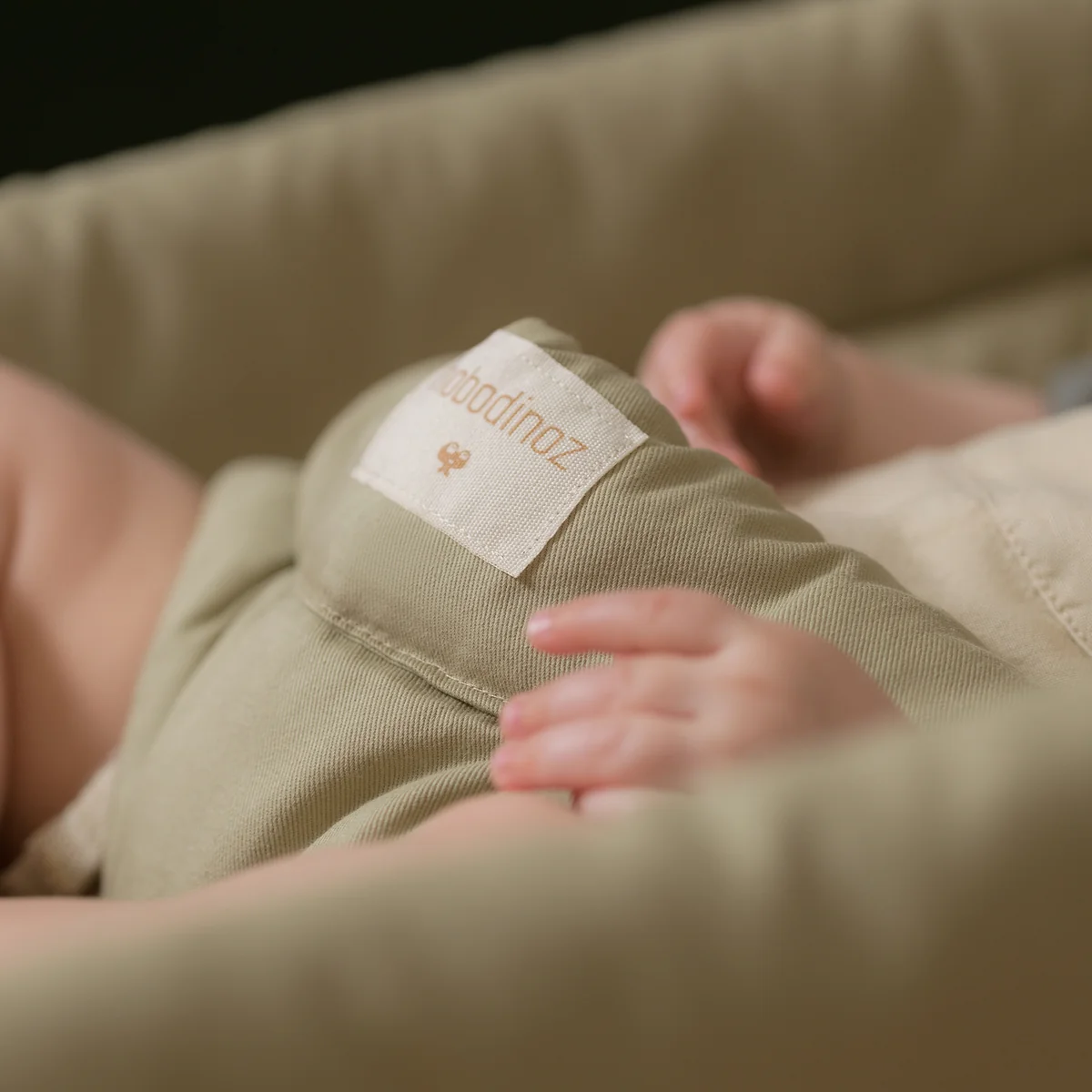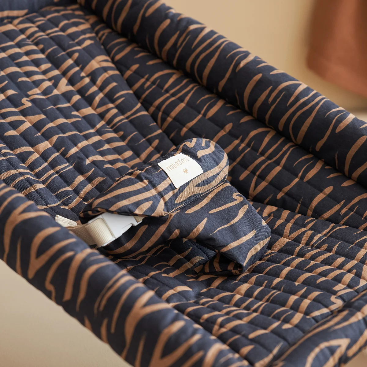 Le nodo est fabriqué Growing Green Le transat de Nobodinoz est fabriqué en bois de hêtre massif. La housse en coton organique est amovible grâce à une fermeture éclair et peut être nettoyée à la main.