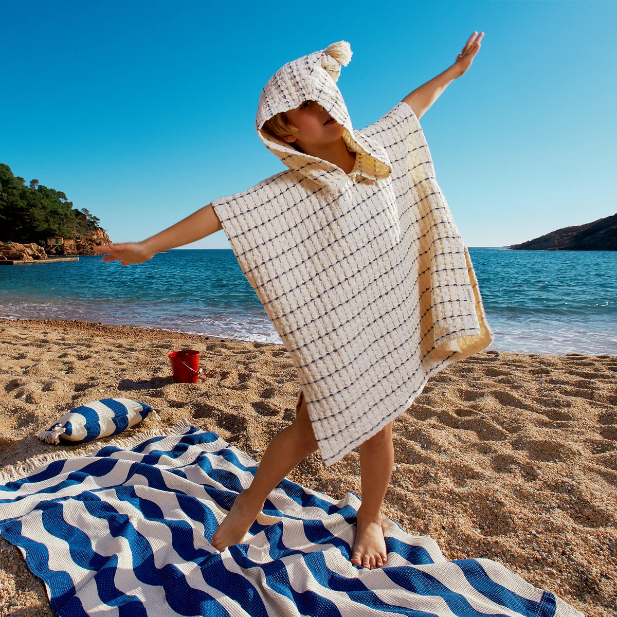 Avec sa capuche à pompon ludique, ses rayures lumineuses et sa coupe décontractée, le poncho en mousseline Portofino de Nobodinoz offre aux enfants une protection idéale contre le soleil tout au long de l'été. Grâce à sa doublure en coton bio lavé, il est d'une douceur inégalée.