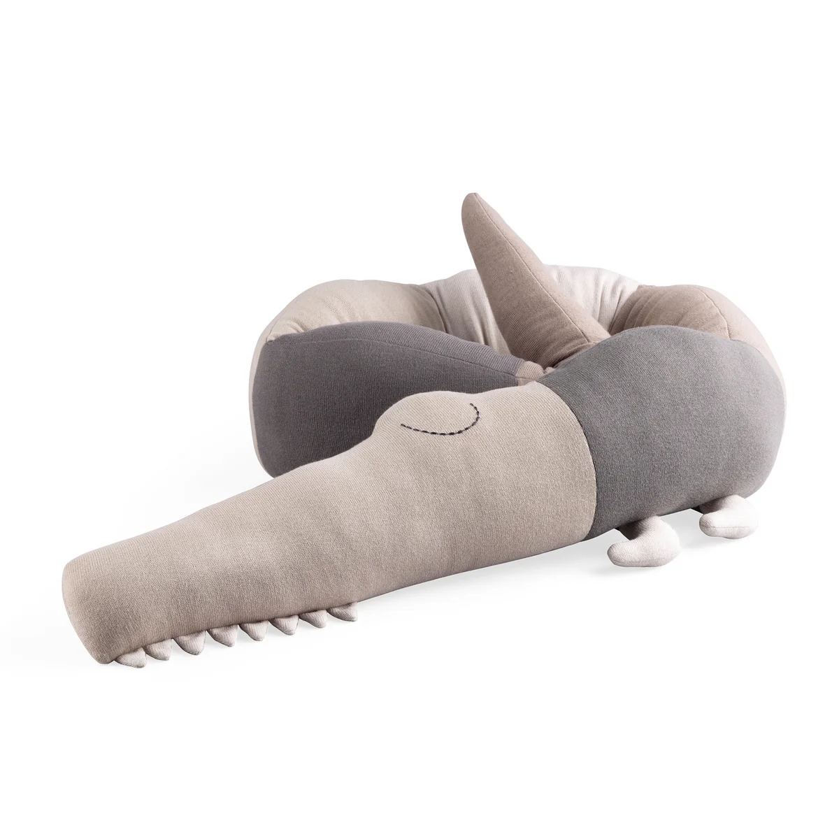 Le crocodile endormi de Sebra est à la fois un coussin moelleux et un jouet. Pour les bébés, le crocodile peut être utilisé comme tour de lit. Au fur et à mesure que l'enfant grandit, le coussin devient un jouet moelleux qui serpente sur le lit et se blottit contre lui quand c'est l'heure de dormir.
