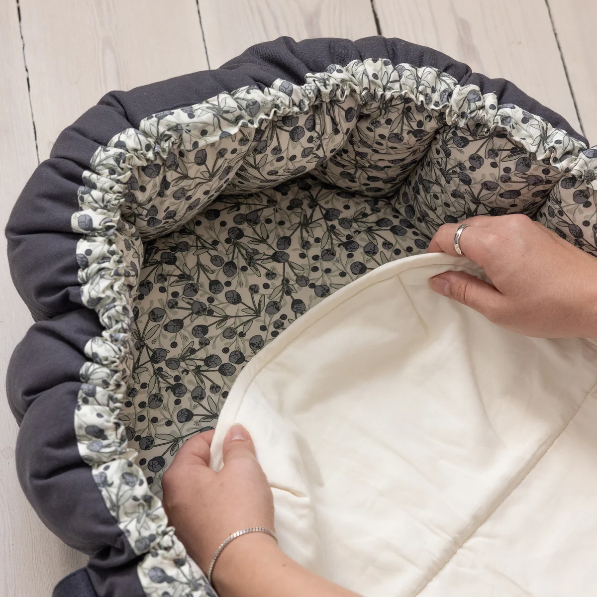 Le nid d'ange 3 en 1 de Sebra assure un grand confort. Il peut être utilisé en déplacement comme lève-bébé - ou servir de grand tapis de jeu lorsque les côtés du nid de bébé sont simplement détachés. Le confortable nid d'ange enveloppe le bébé et lui offre un endroit sûr et familier.