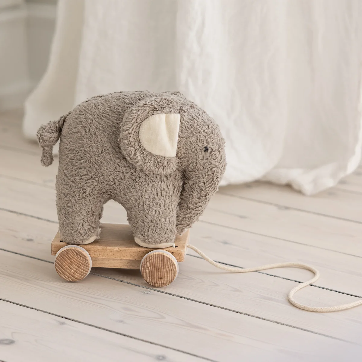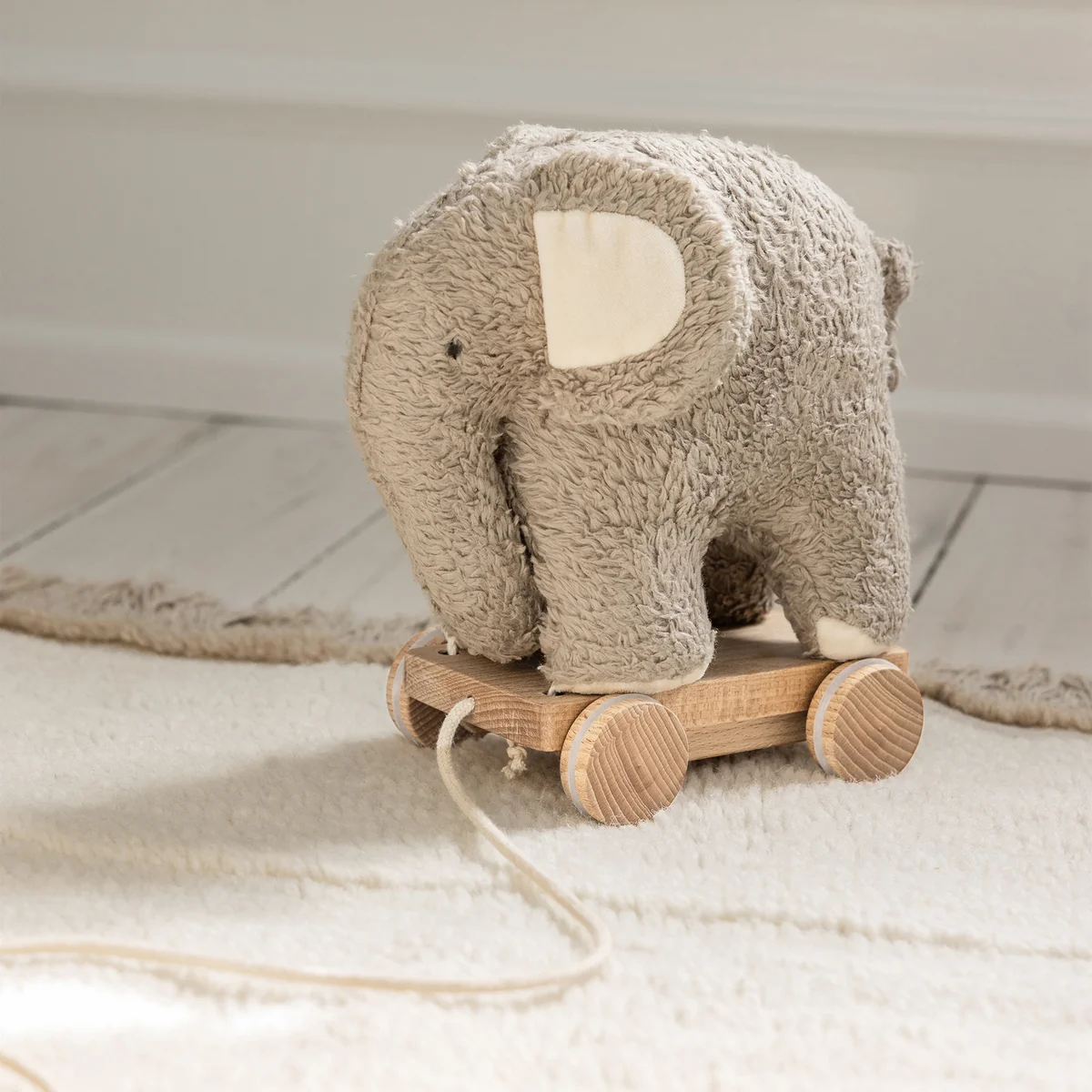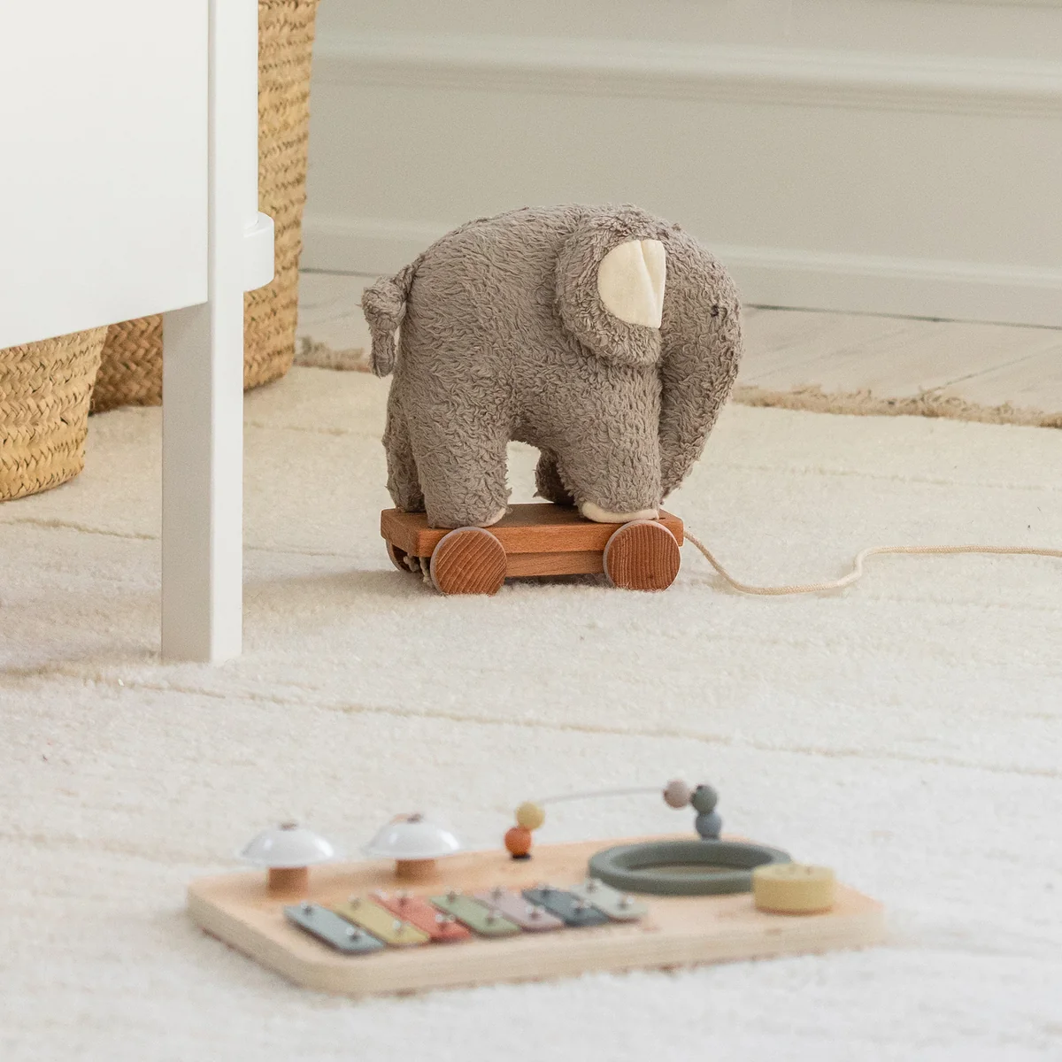 Grâce au cordon de traction pratique en coton, votre enfant peut emmener l'animal à tirer partout - pour des promenades dans la maison ou de petites aventures dans la chambre d'enfant. Et si l'animal en peluche se salit, il se détache facilement de la plaque en bois et se lave à 30 °C. Un jouet charmant qui fait également office de détail décoratif dans la chambre d'enfant.