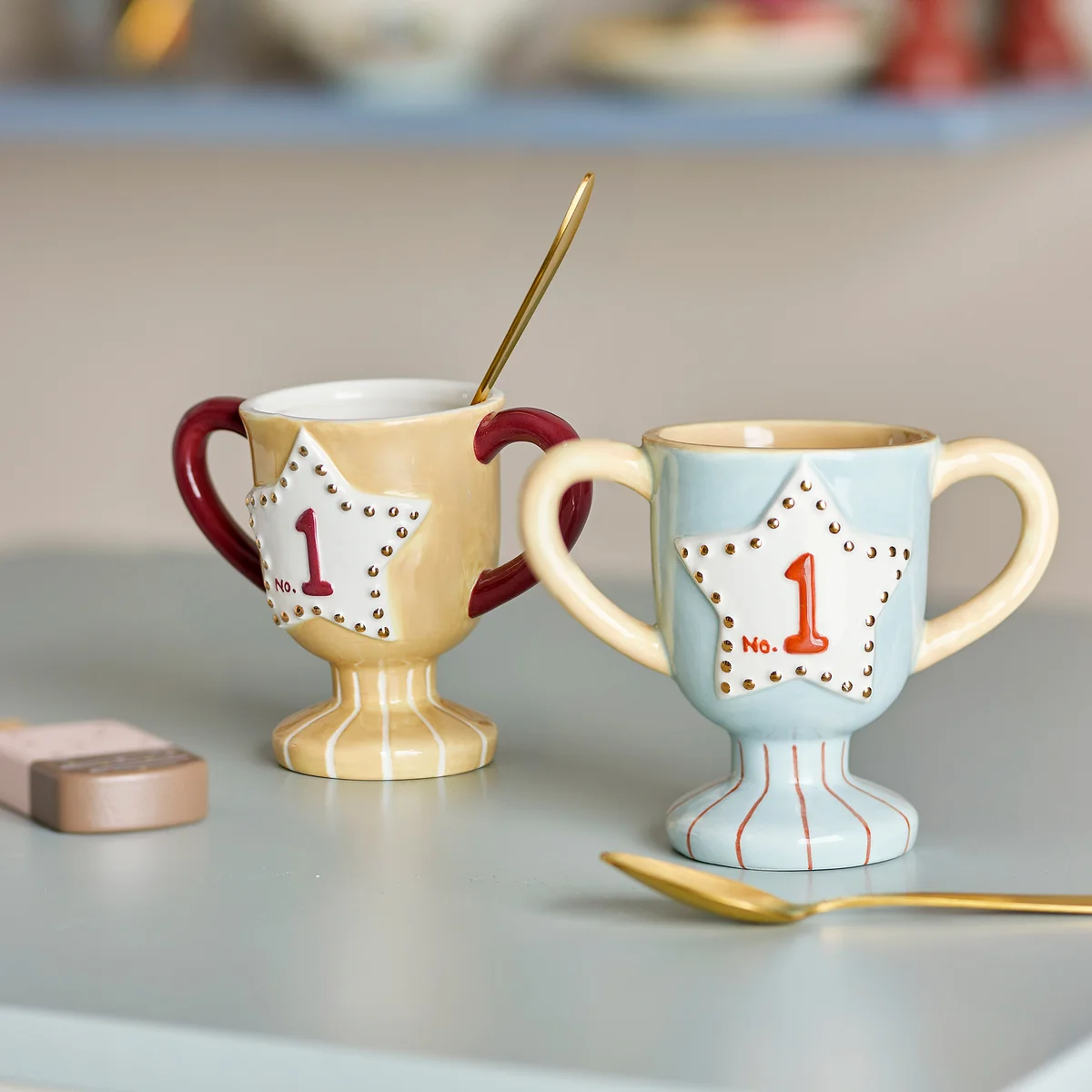 - Tasses en céramique peintes à la main au design de trophée