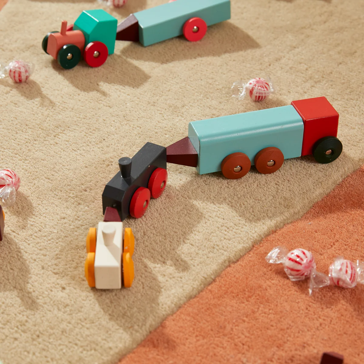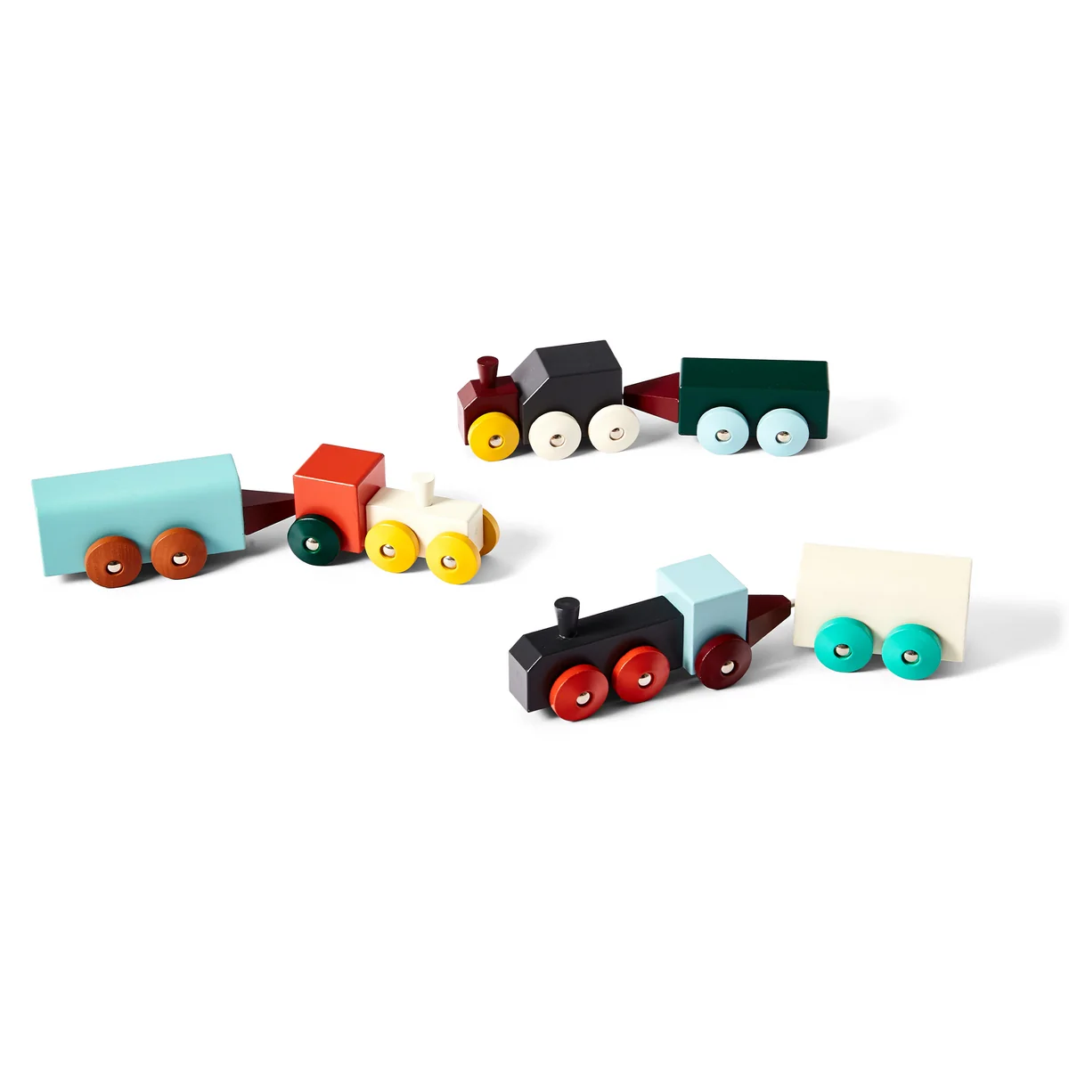 Le site Hovers jouets en bois du fabricant américain Areaware est fabriqué à partir de formes modernes et peint dans des couleurs vives et lumineuses. Le designer et artiste Floris Hovers a conçu ce jouet qui semble à première vue assez simple, des trains et des tracteurs. Mais le design coloré fait de ces éléments en bois un accroche-regard qui fait sourire les petits comme les grands ! Les différents blocs en bois de Schima Superba peuvent être reliés très facilement grâce à leurs connecteurs magnétiques intégrés. Ils peuvent être disposés différemment selon les préférences de chacun.