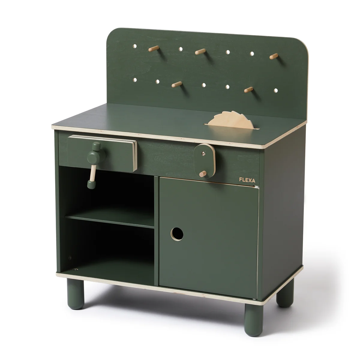 L'établi Flexa Play se distingue par son design scandinave attrayant, à la fois fonctionnel et esthétique. Fabriqué en bois massif de haute qualité et, l'établi est robuste et durable. Les couleurs douces et le vernis adapté aux enfants font de l'établi non seulement un objet sûr pour votre enfant, mais aussi un meuble attrayant dans la chambre d'enfant.