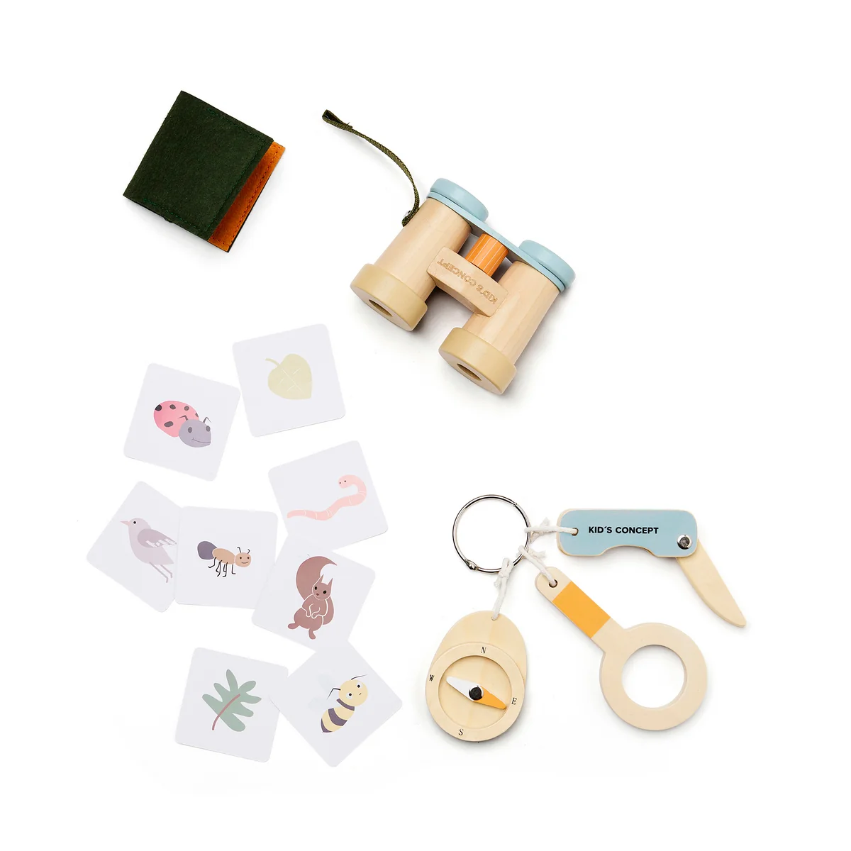 Le kit d'expédition Kid's Hub de Kids Concept contient tout ce dont les jeunes naturalistes ont besoin pour explorer leur environnement et faire des découvertes passionnantes. Avec des jumelles de qualité, un couteau de poche pratique, une loupe puissante, une boussole précise, 8 cartes d'explorateur plastifiées et un porte-cartes pliable, les possibilités sont infinies.