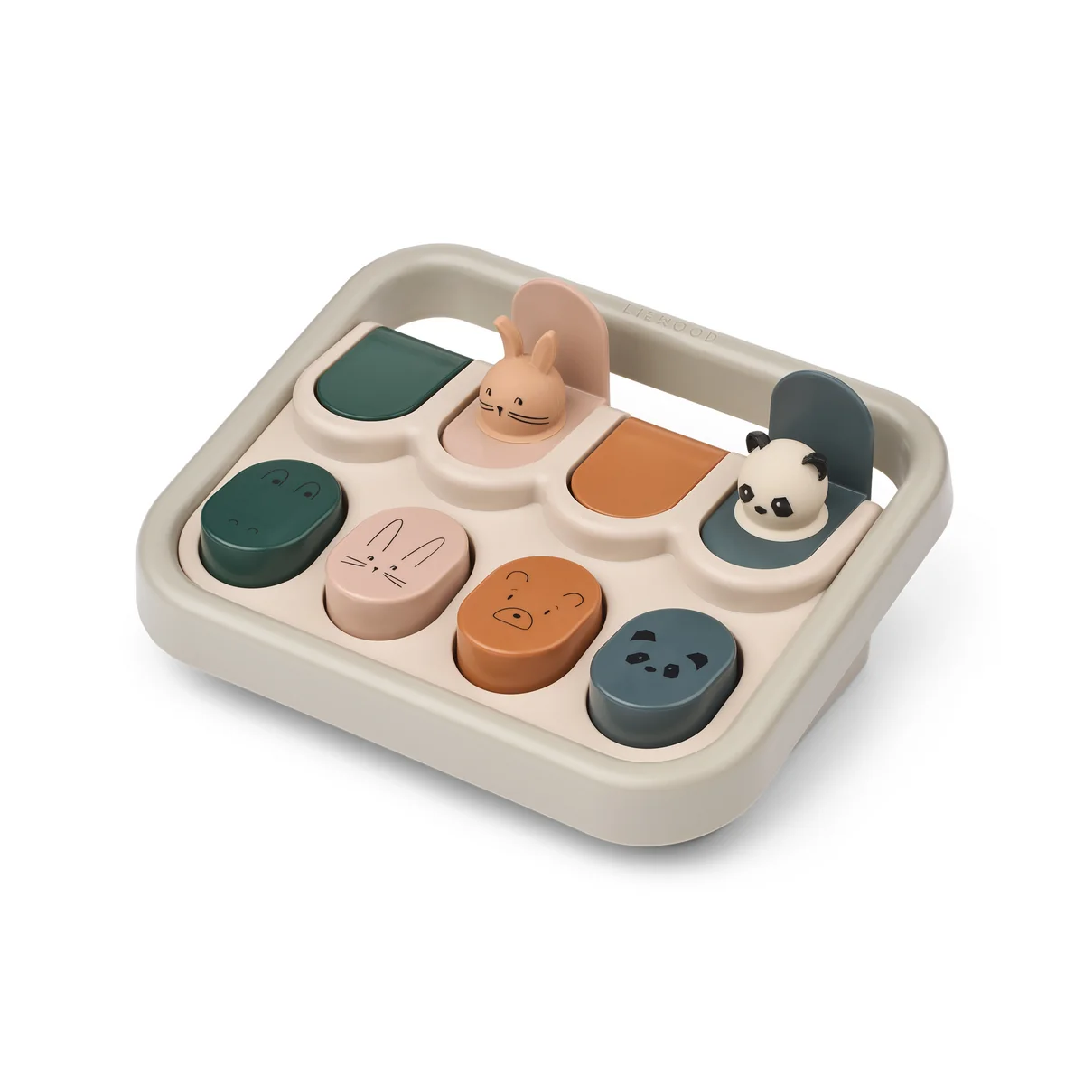 Le jouet Aviva Pop-Up de LIEWOOD est un jouet actif conçu avec amour qui stimule de manière ludique la curiosité, la motricité et la coordination œil-main des bébés et des jeunes enfants. Grâce à l'élément pop-up, les enfants découvrent sans cesse de petites surprises : Des personnages ou des objets apparaissent, disparaissent et peuvent être redécouverts - idéal pour les premières expériences de préhension et d'exploration.
