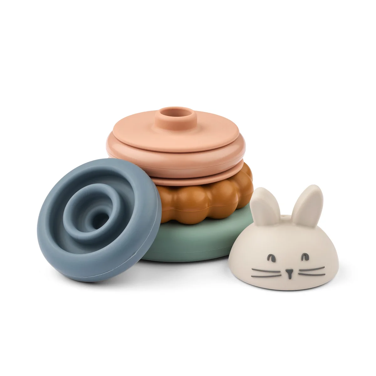 La tour d'empilage Donata de LIEWOOD est une réinterprétation moderne de la tour d'empilage classique et offre des heures de plaisir aux bébés et aux jeunes enfants. Chaque pièce contient des éléments multifonctionnels tels que des hochets, des surfaces de dentition, des tamis ou des jeux de bain qui font appel à différents sens et stimulent la créativité. La tour est couronnée par un adorable petit animal qui peut également être utilisé comme jouet de bain - parfait pour un apprentissage ludique à la maison ou dans la salle de bain.