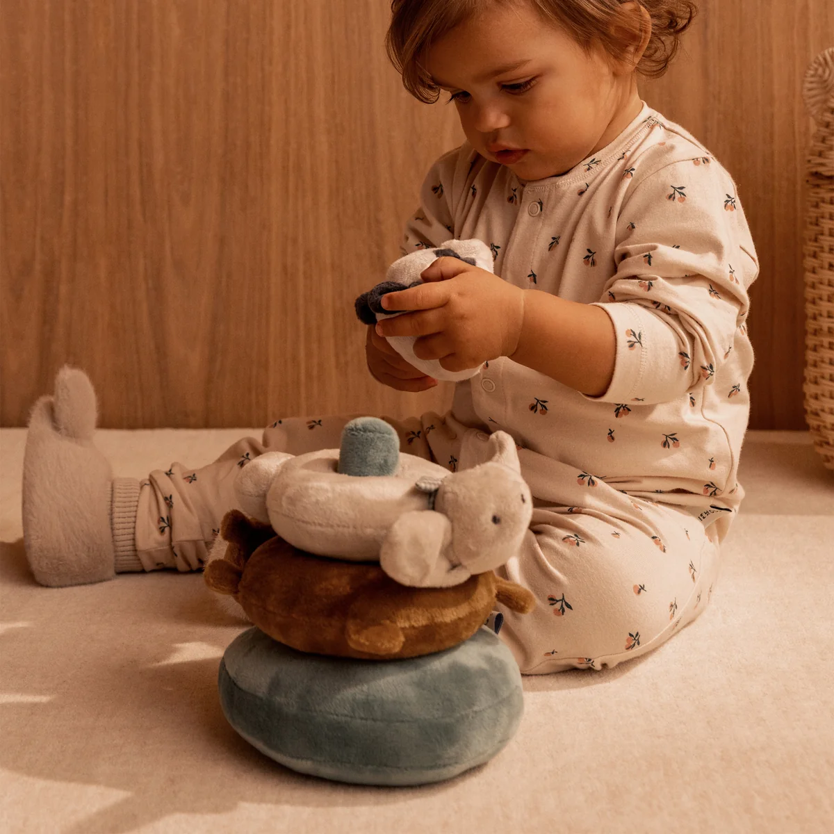 - Tour d'empilage en peluche avec d'adorables formes d'animaux