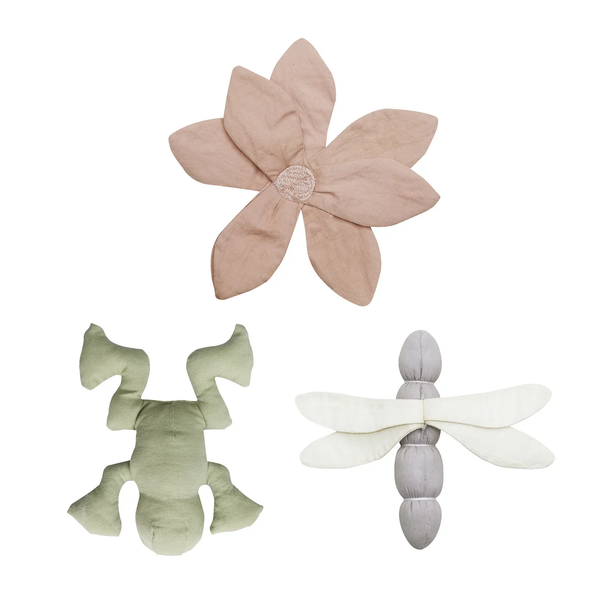 Les jouets d'activité pour bébés du fabricant Lorena Canals développent tous les sens des plus jeunes membres de la famille ! Le crépitement et le bruissement des jouets garantissent des moments de jeu extrêmement amusants. Le set de 3 pièces comprend un nénuphar, une grenouille et une libellule. Si nécessaire, les éléments de jeu peuvent être nettoyés en toute simplicité dans la machine à laver. Les housses sont fabriquées en coton bio, le rembourrage est en polyester recyclé, ainsi que le papier à rouler et les hochets.