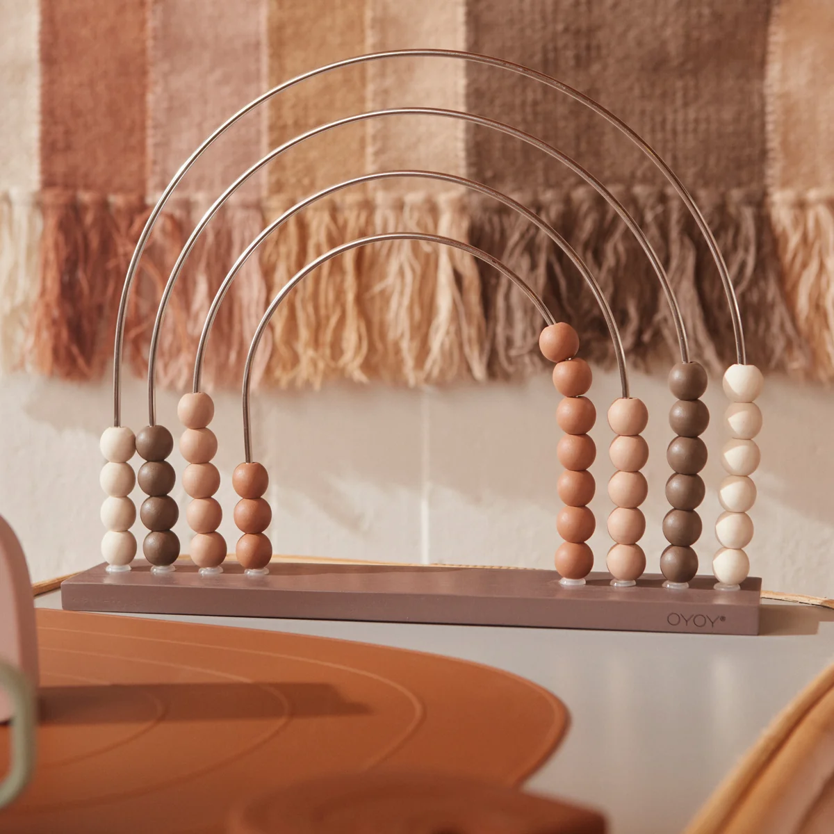 Le boulier Rainbow de OYOY O se caractérise par des couleurs subtiles et un design intemporel. Le boulier permet de stimuler les organes sensoriels et les capacités motrices de l'enfant tout en lui offrant une activité ludique. Le boulier est particulièrement adapté comme idée de cadeau pour un enfant dont c'est l'anniversaire et qui veut apprendre les nombres et les quantités.