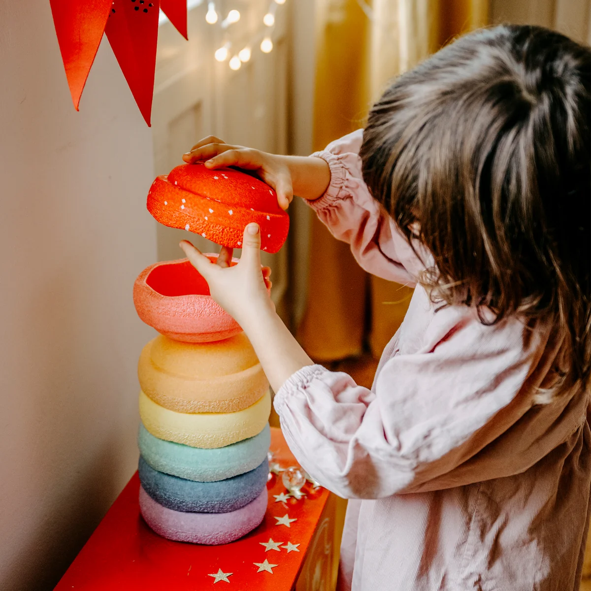 L'Original Mini de Stapelstein® est la version compacte de la fameuse brique à empiler, idéale pour les petites mains et les grandes idées. Grâce à sa taille pratique, les enfants peuvent facilement porter le Mini, l'empiler et l'intégrer dans leurs jeux créatifs. Qu'il s'agisse d'une pierre d'équilibre, d'un siège ou d'un élément de construction pour des constructions imaginatives, l'Original Mini favorise le mouvement et l'apprentissage ludique. Fabriqué dans un matériau particulièrement léger et robuste, il peut être utilisé aussi bien à l'intérieur qu'à l'extérieur. Avec le Mini, les enfants peuvent laisser libre cours à leur imagination tout en exerçant leurs capacités motrices.