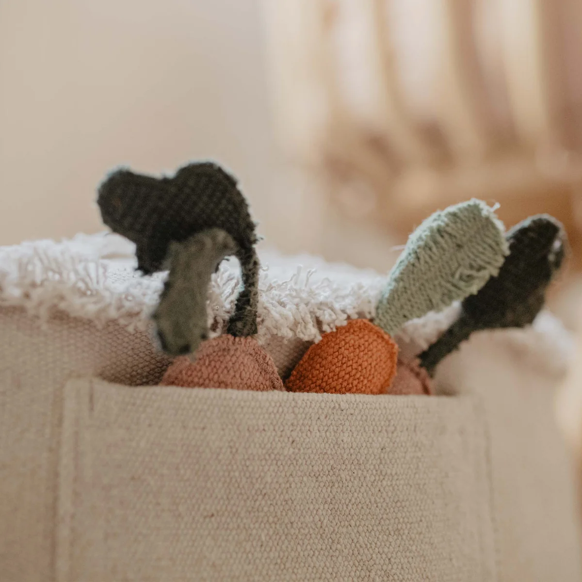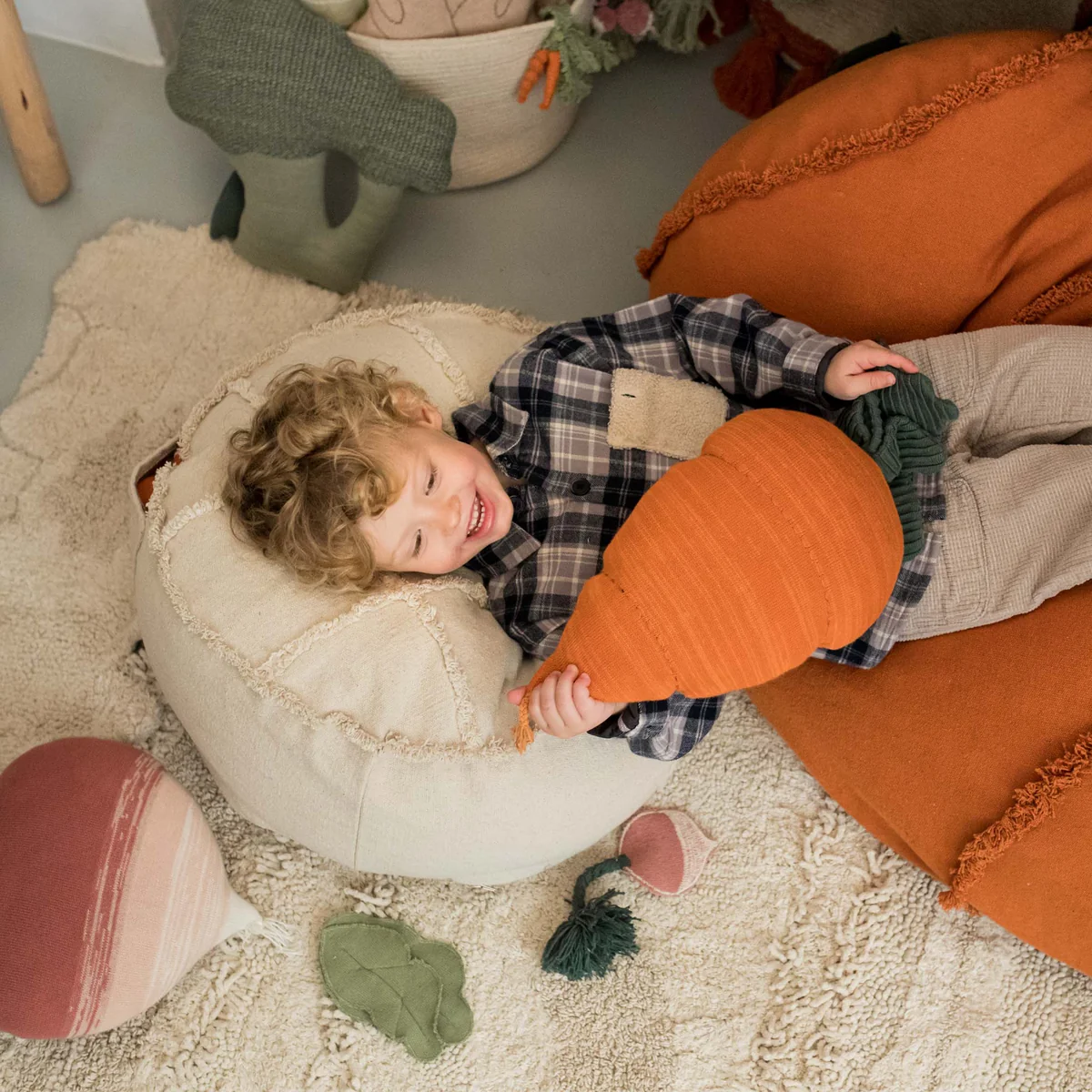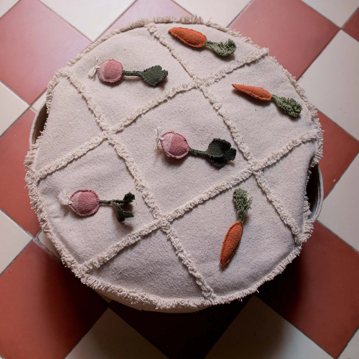 Le Tic-Tac-Toe Pouf du fabricant espagnol Lorena Canals offrent jeu et plaisir à toute la famille. Le pouf fait partie de la collection du duo mère-fille Oli & Carol. Les mini-végétaux en tissu servent de pions et peuvent être utilisés à volonté. La housse du pouf est en coton et il est rempli de perles en polystyrène.