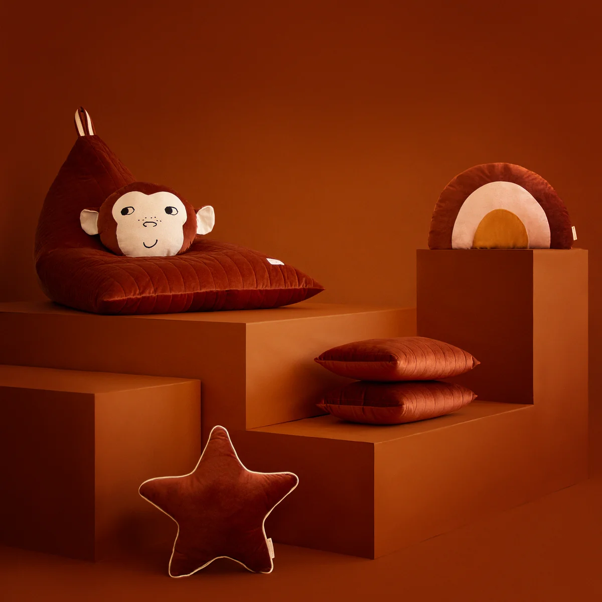 Le pouf Essaouira velours de Nobodinoz fait le bonheur des petits et des grands. Le pouf élégant vous invite à la flânerie et vous assure une atmosphère chaleureuse. Grâce à une poignée en haut, il peut être facilement transporté et amené à l'endroit souhaité, également idéal pour les enfants. La couverture est en velours organique recyclé, certifié OEKO-TEX, qui a l'air chic et confortable. Le pouf est fabriqué à Barcelone.
