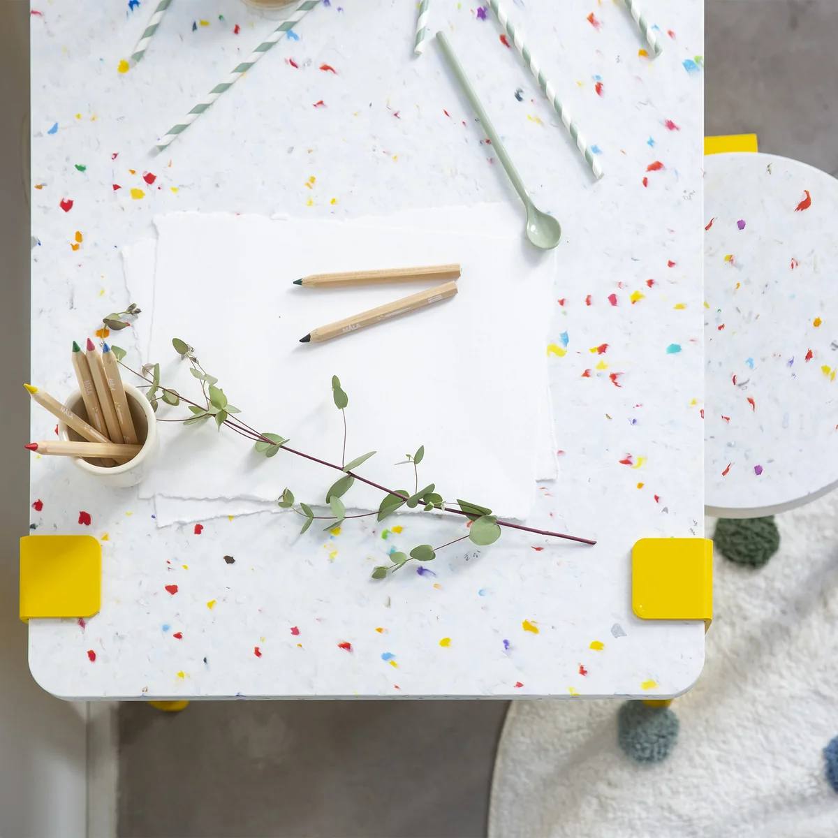 Le bureau pour enfants Tutti Frutti du fabricant français TipToe donne à chaque chambre d'enfant une touche artistique et créative ! Le plateau de table fonctionnel et intemporel est fabriqué à partir de jouets pour enfants recyclés en plastique. Les pieds de la table et les supports sont fabriqués en acier recyclable. La table est idéale pour les enfants âgés de 3 à 6 ans.