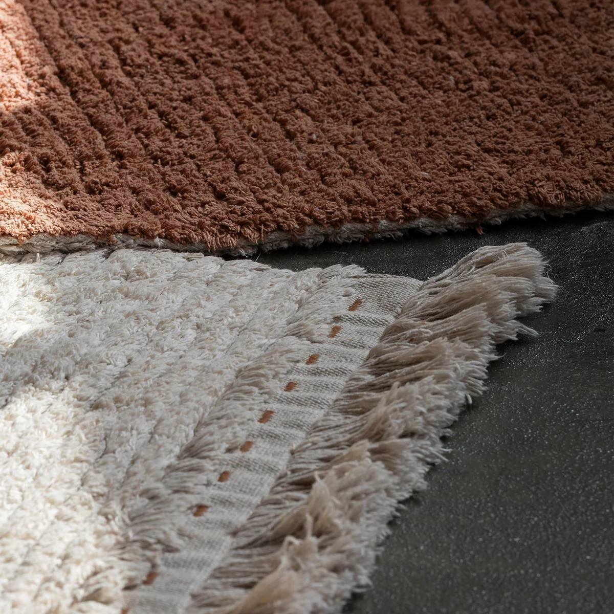Le tapis réversible Duetto de Lorena Canals est une pièce maîtresse multifonctionnelle pour votre maison. Grâce à sa double fonctionnalité, vous pouvez facilement le retourner pour changer rapidement et facilement le design de la pièce. Fabriqué à la main en coton naturel durable et lavable, il offre non seulement un look élégant, mais aussi un confort durable et une facilité d'entretien pratique.