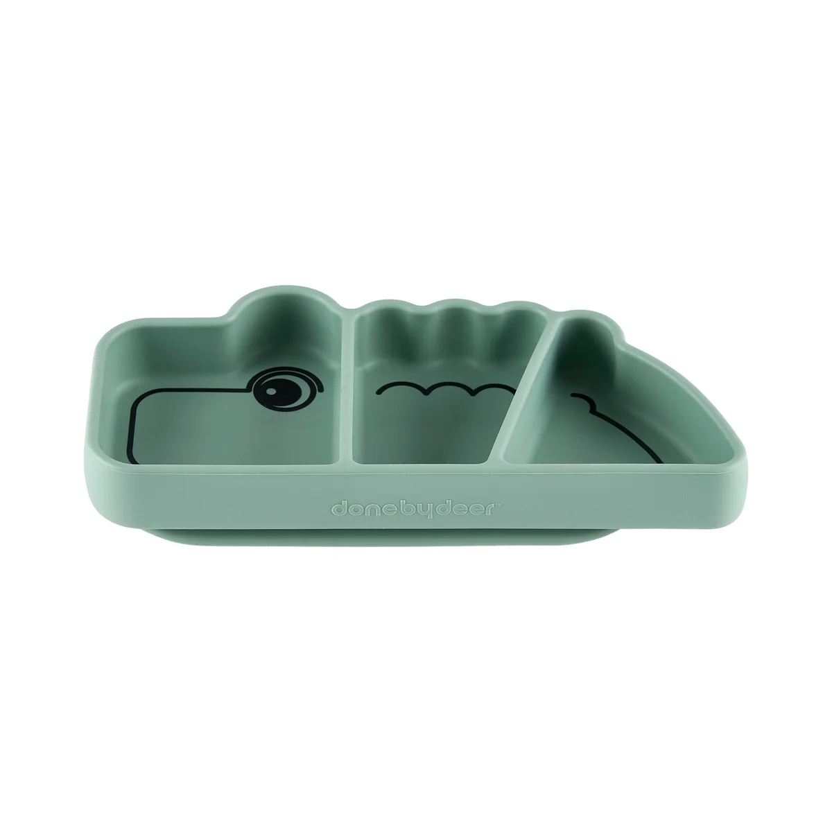 Le Done by Deer Croco silicone Stick & Stay L'assiette en silicone est une vaisselle innovante et pratique pour les petits mangeurs. Avec son charmant design de crocodile et sa construction fonctionnelle, cette assiette est parfaite pour que les petits puissent profiter de leurs repas.