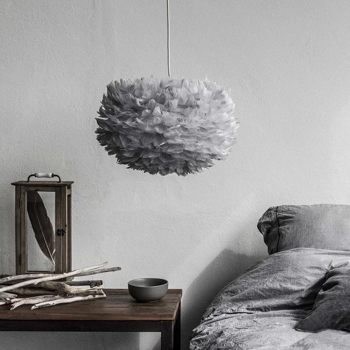 Chaque plume de la lampe EOS par Umage est fixée individuellement, soigneusement à la main. Filtrée par les plumes, EOS diffuse une lumière chaude et indirecte. Ainsi, la lampe en plumes est parfaitement adaptée pour une utilisation dans les chambres à coucher et salons. La lampe Umage y crée une ambiance cosy et atmosphérique.