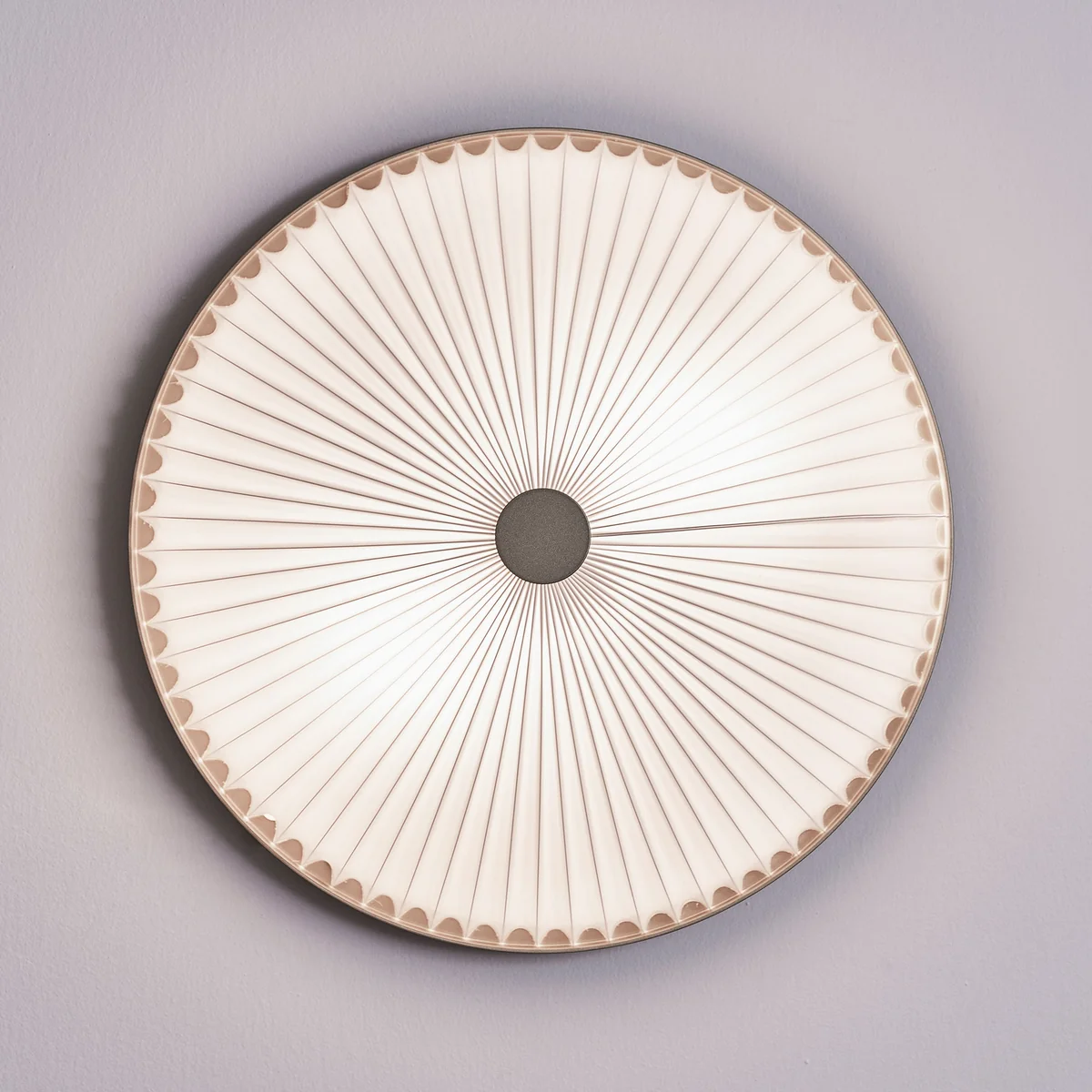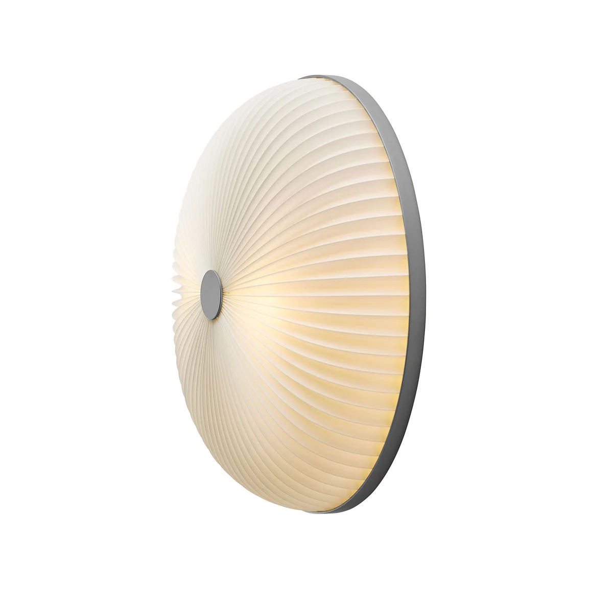 Le lampadaire mural et plafonnier Lamella du Klint est une version du lampadaire suspendu Lamella conçu par le duo de designers Jonah Takagi et Hallgeir Homstvedt. Les deux designers ont été fascinés par la face inférieure des champignons et se sont inspirés d'eux pour créer une série de luminaires avec une structure plissée lamellaire similaire. Les lamelles peuvent être utilisées de manière flexible comme luminaire mural ou plafonnier et fournissent une lumière anti-éblouissante dans la pièce.