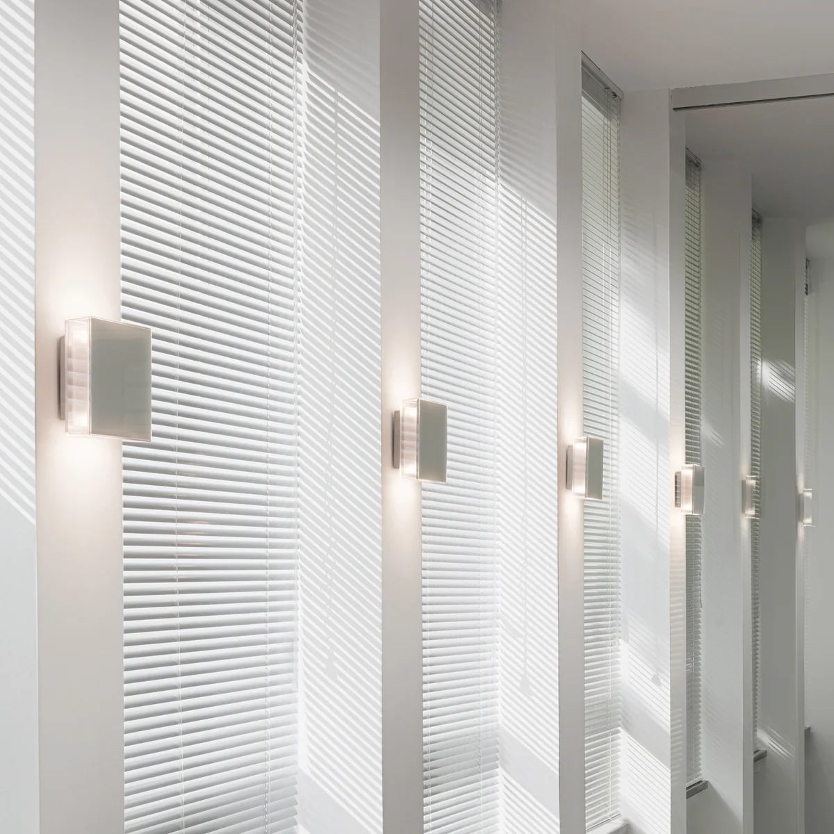La applique App se compose d'un cadre en aluminium, d'un abat-jour en polycarbonate et d'une façade en plexiglas ou en verre dans de nombreuses versions différentes. La technologie éconergétique est contenue dans deux panneaux LED haute intensité. Ils émettent une lumière intense symétriquement vers le haut et vers le bas, réfléchissant dans la pièce par le mur, le plafond et le sol. La lumière tombant latéralement à travers le cuboïde, d'autre part, se diffuse doucement et sans éblouissement. La couleur de la face avant n'a aucune influence sur l'intensité lumineuse.