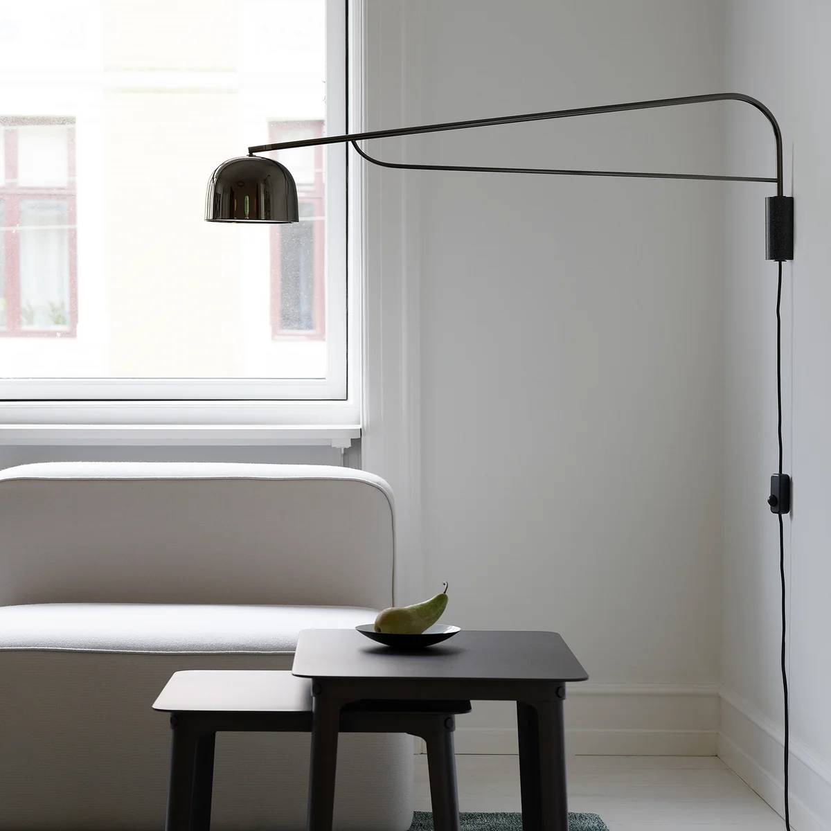 L'applique murale Grant LED de Normann Copenhagen est disponible en différentes versions avec des bras de différentes longueurs.