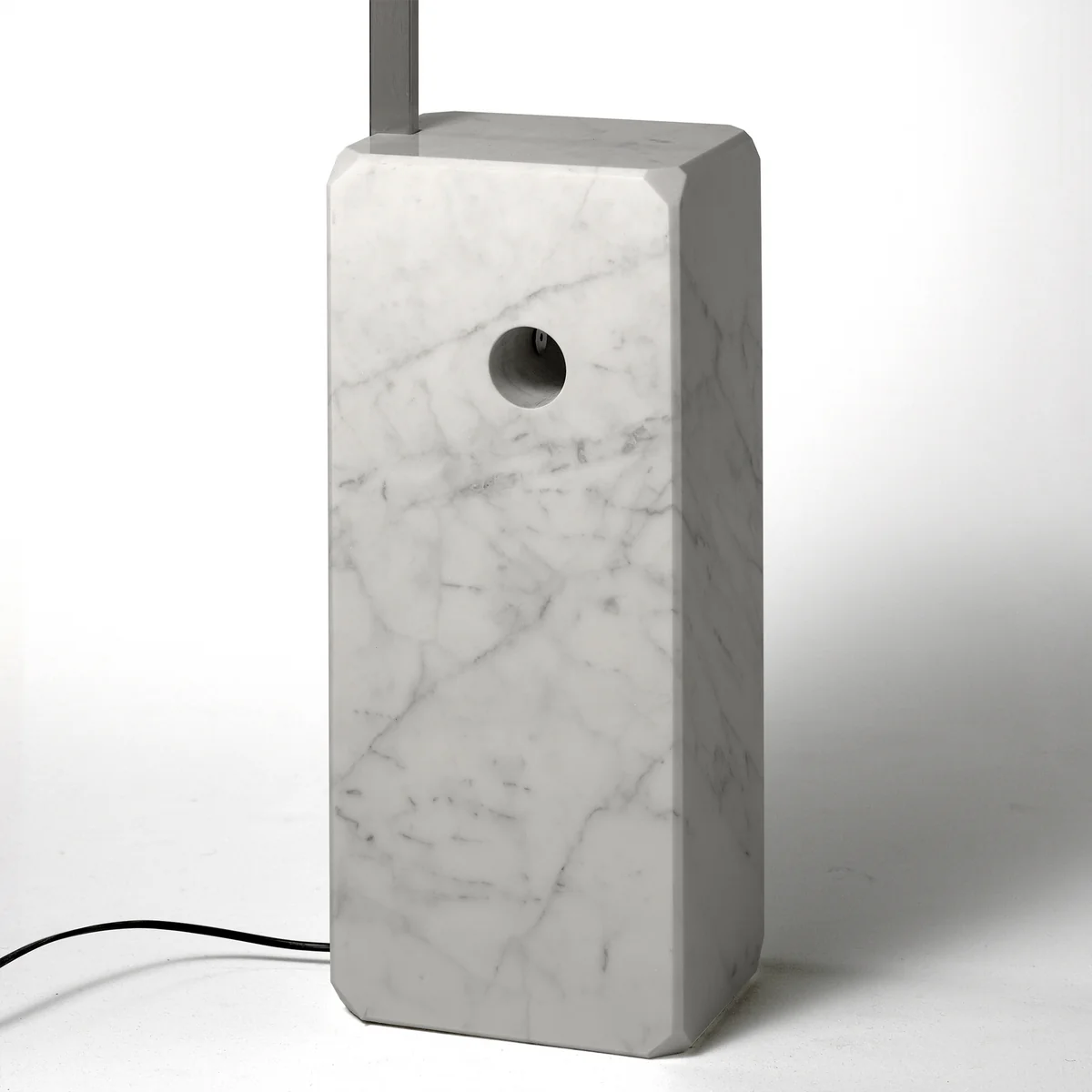 - Description technique: Socle en marbre blanc de Carrare; Tige télescopique en acier inox satiné; Réflecteur modulable et réglable en hauteur en