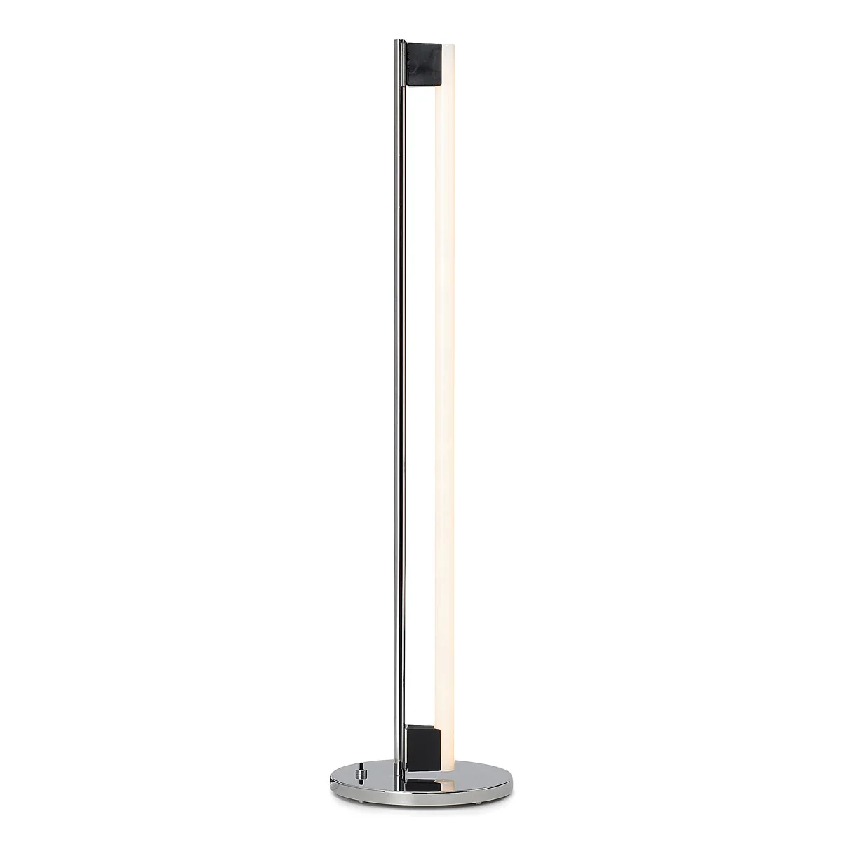Tube Light est considéré comme un classique parmi les lampadaires et se distingue par son design unique : Le corps du luminaire et la lampe représentent deux lignes parallèles qui s'élèvent verticalement depuis le sol et forment un contraste extraordinaire. En effet, alors que le corps du luminaire donne une impression de froideur et de dureté grâce à sa surface chromée, la lampe LED diffuse une lumière chaude et douce. Des douilles en plastique relient les deux éléments.