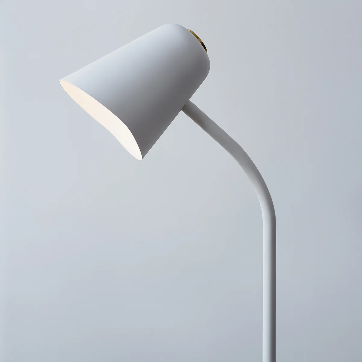 Alors que la base est en fonte et le support en acier revêtu par poudre, la partie supérieure jusqu'à l'abat-jour est en silicone, ce qui rend l'abat-jour flexible et ajustable. L'orientation de la lumière peut ainsi être réglée en fonction des exigences et des besoins individuels.
