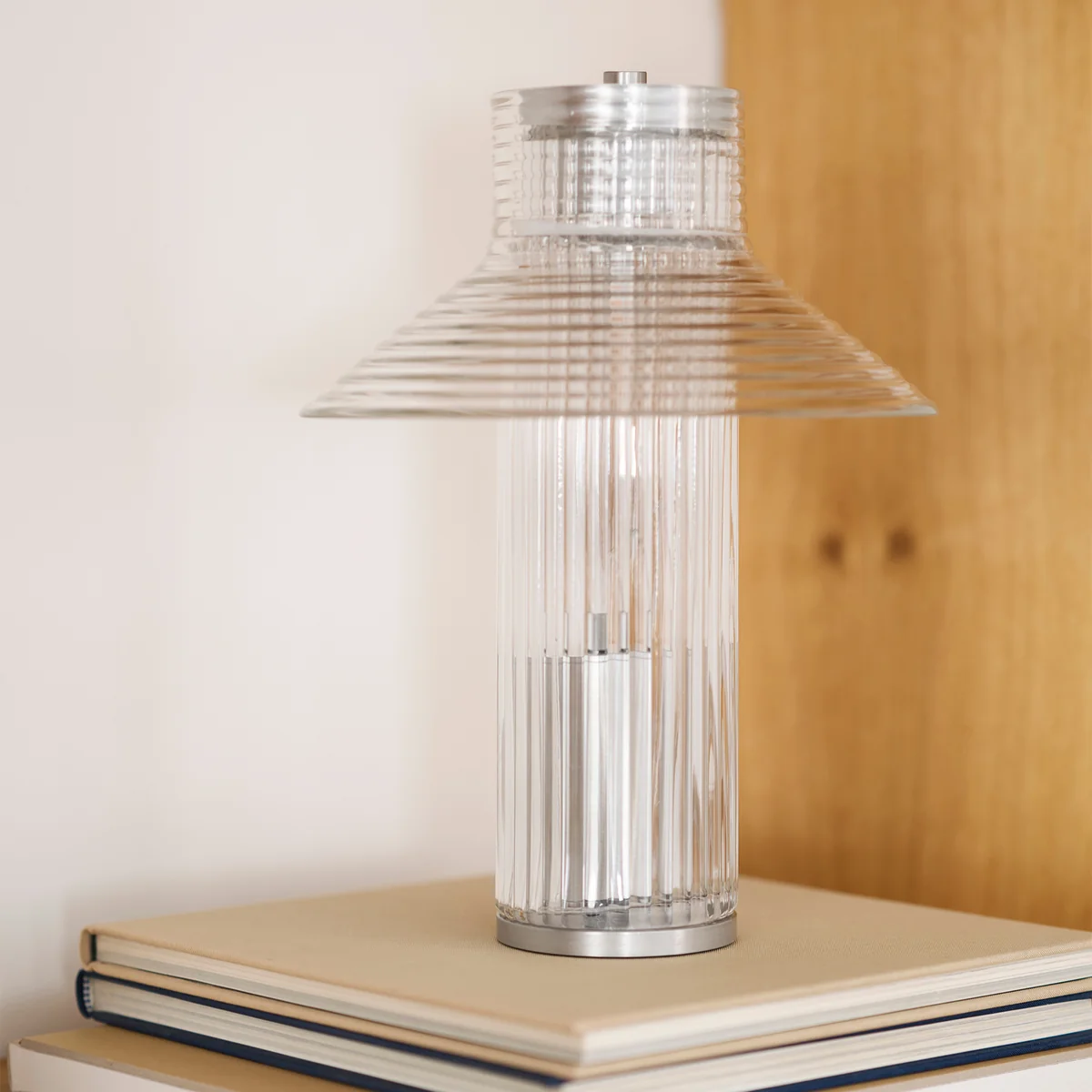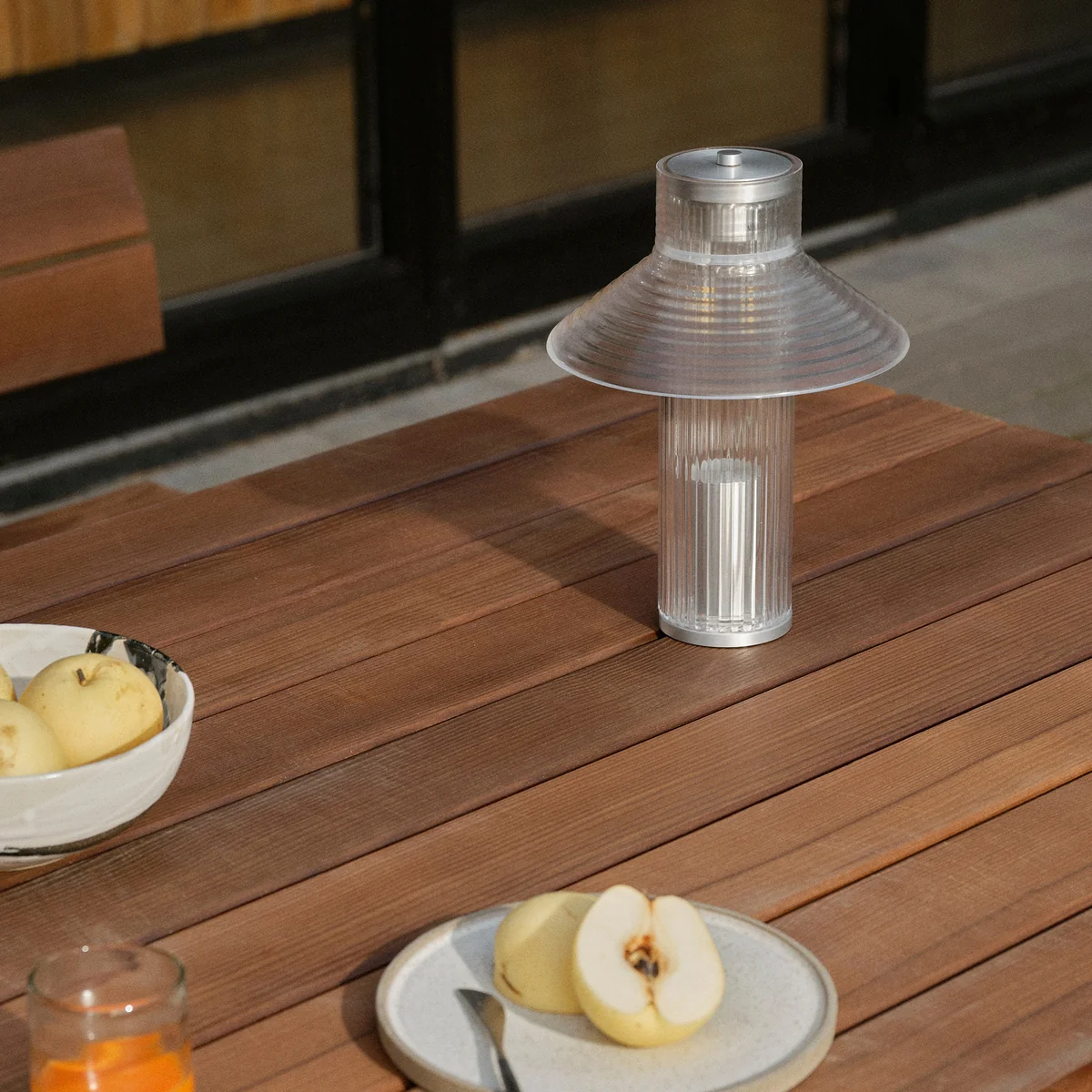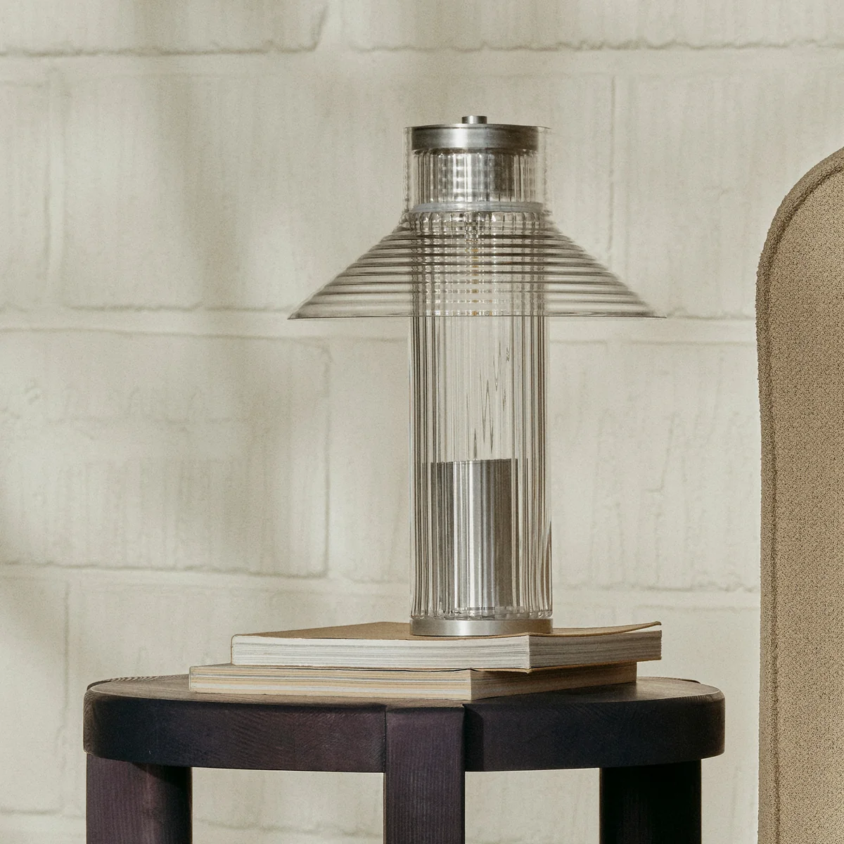 La lampe Sletterhage lampe de table à accu de FDB Møbler porte en elle l'atmosphère du phare de la péninsule danoise d'Helgenæs qui lui a donné son nom. Le verre transparent et strié joue doucement avec la lumière et rappelle les éléments fonctionnels et industriels qui, depuis des décennies, permettent aux pêcheurs et aux voyageurs de s'orienter. La designer Laura Bilde utilise systématiquement des composants en verre récurrents pour créer un langage formel harmonieux qui semble à la fois familier et contemporain.