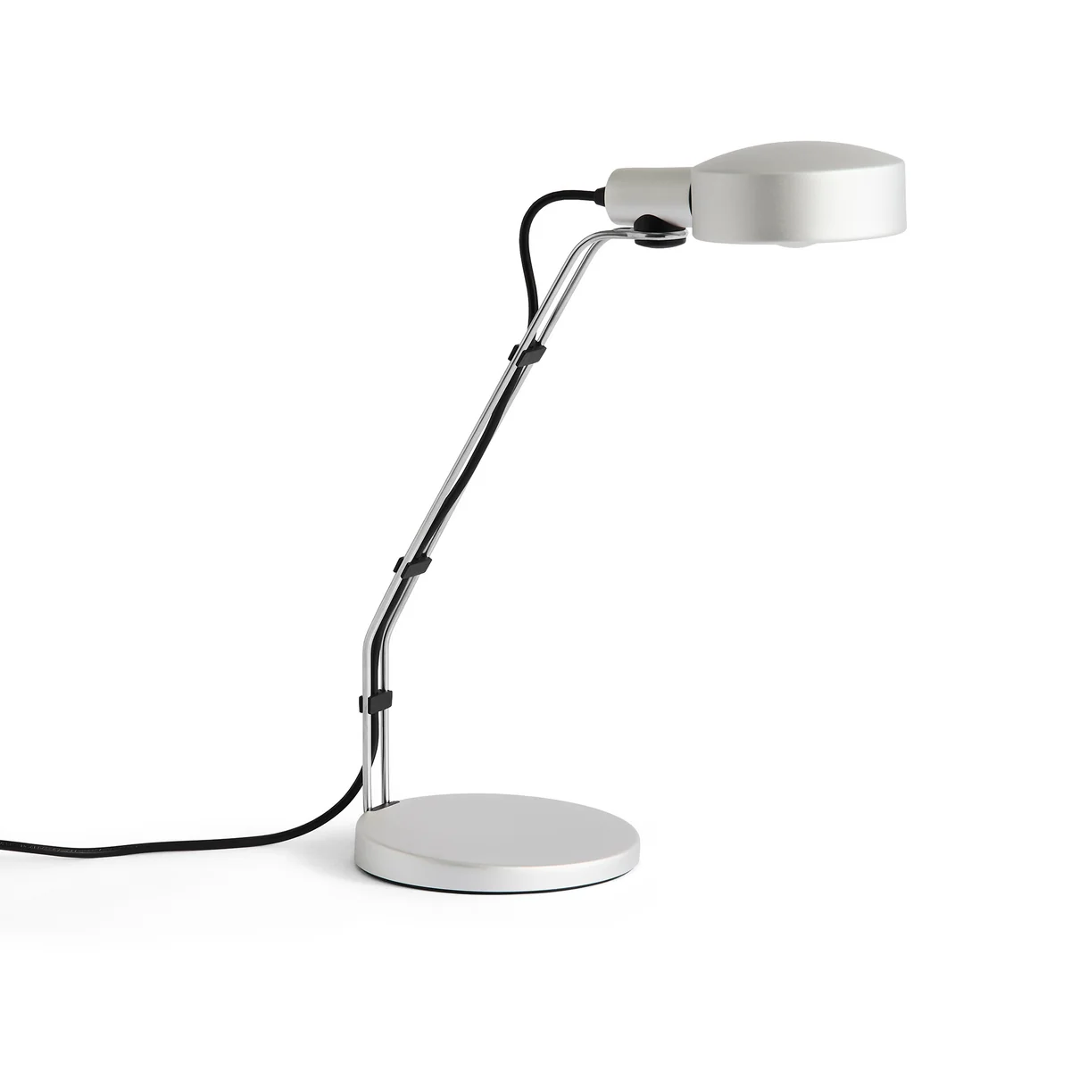 Fabriqué en aluminium durable anodisé en couleur naturelle, le luminaire allie un look industriel brut à des lignes arrondies marquantes. Sa conception flexible lui permet de se poser librement sur les bureaux, les tables et autres surfaces et de fournir une lumière localisée et orientée pour répondre à des besoins spécifiques.