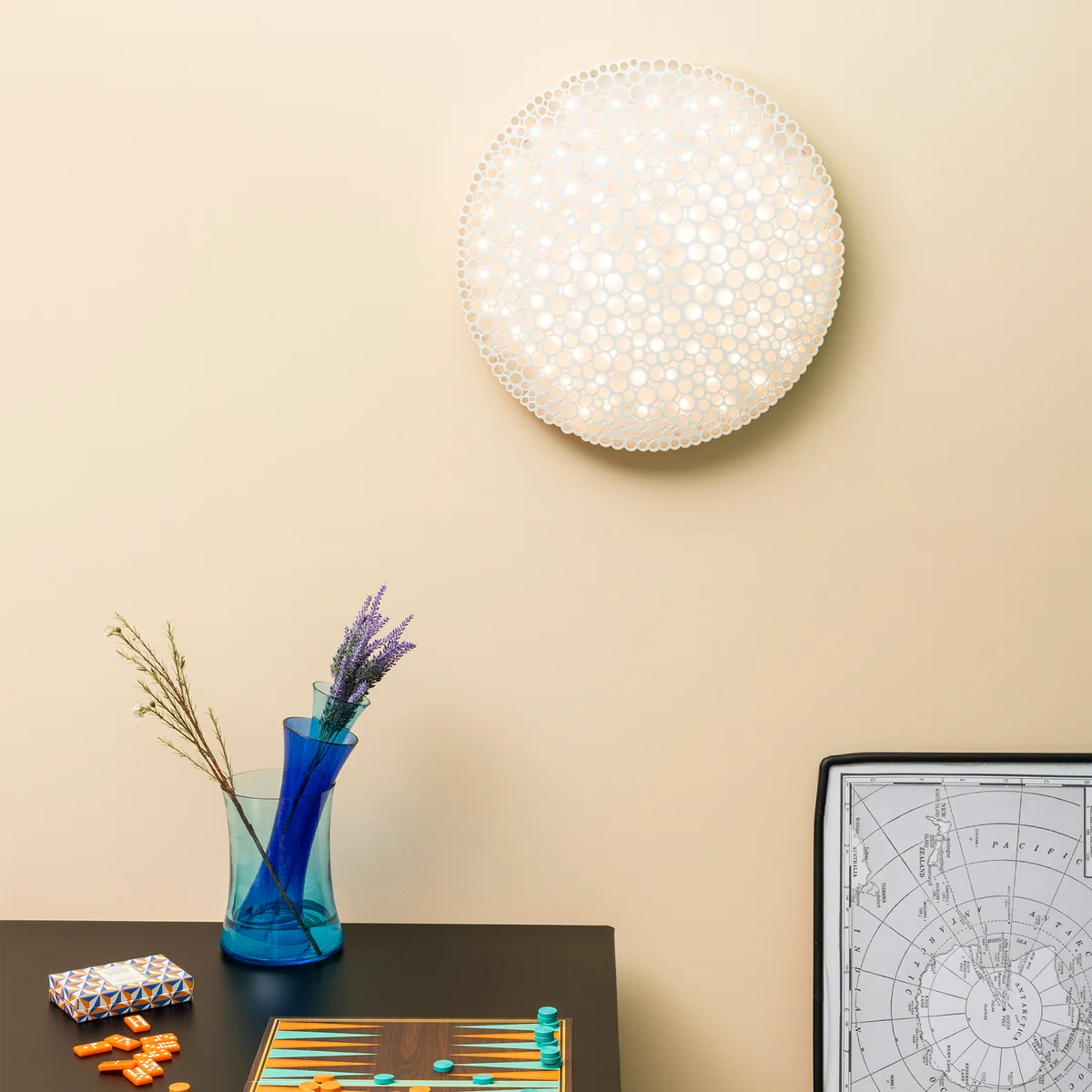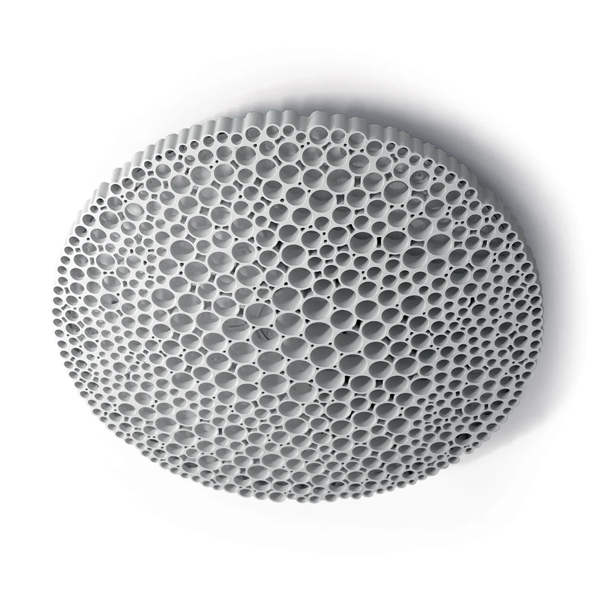 Pour le look unique du plafonnier LED Calipso d' Artemide, le designer Neil Poulten a inséré la photo de la lune dans un algorithme basé sur l'image. Le résultat est un luminaire qui, avec sa forme en nid d'abeille naturelle et irrégulière, est un véritable accroche-regard dans chaque salon, salle à manger ou couloir. Cependant, les nids d'abeilles lumineux façonnent non seulement l'esthétique du Calipso, ils assurent également une émission lumineuse agréable et uniforme.