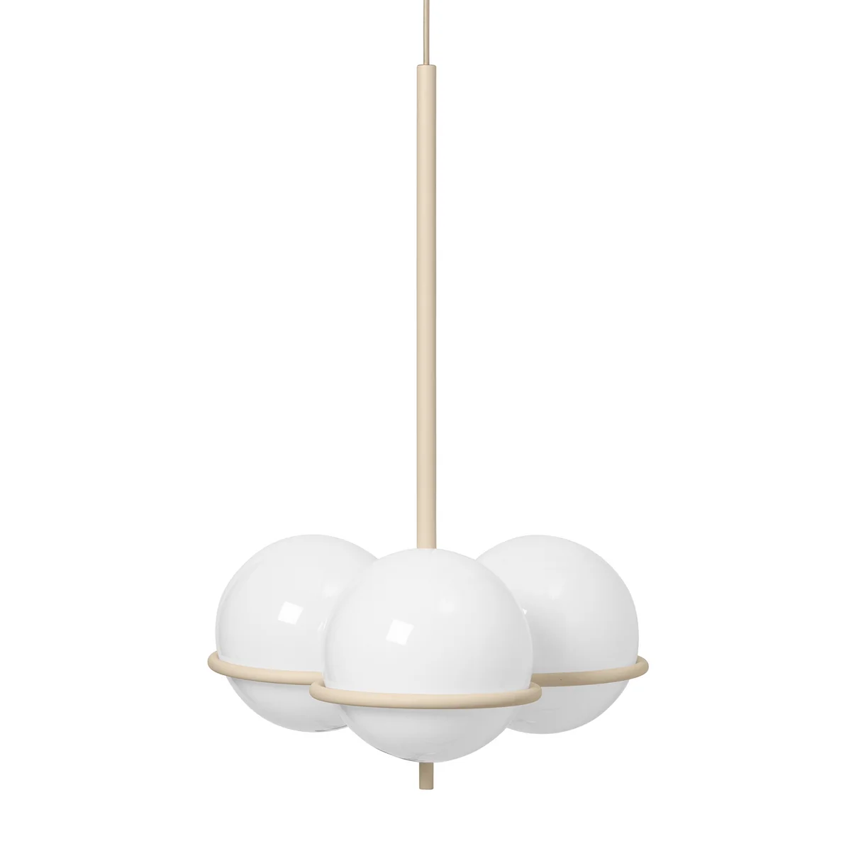 Le Era lustre du fabricant danois Ferm Living séduit par sa forme géométrique élégante et ses lignes épurées. Il s'inspire du mouvement Art déco des années 20. Les trois boules en verre opalin du Era lustre assurent un look délicat et intemporel. Bien que le lustre soit de conception très simple, sa forme exceptionnelle attire l'attention. Le Era Le lustre peut être installé de manière optimale dans un couloir, une cage d'escalier ou au-dessus de la table à manger.