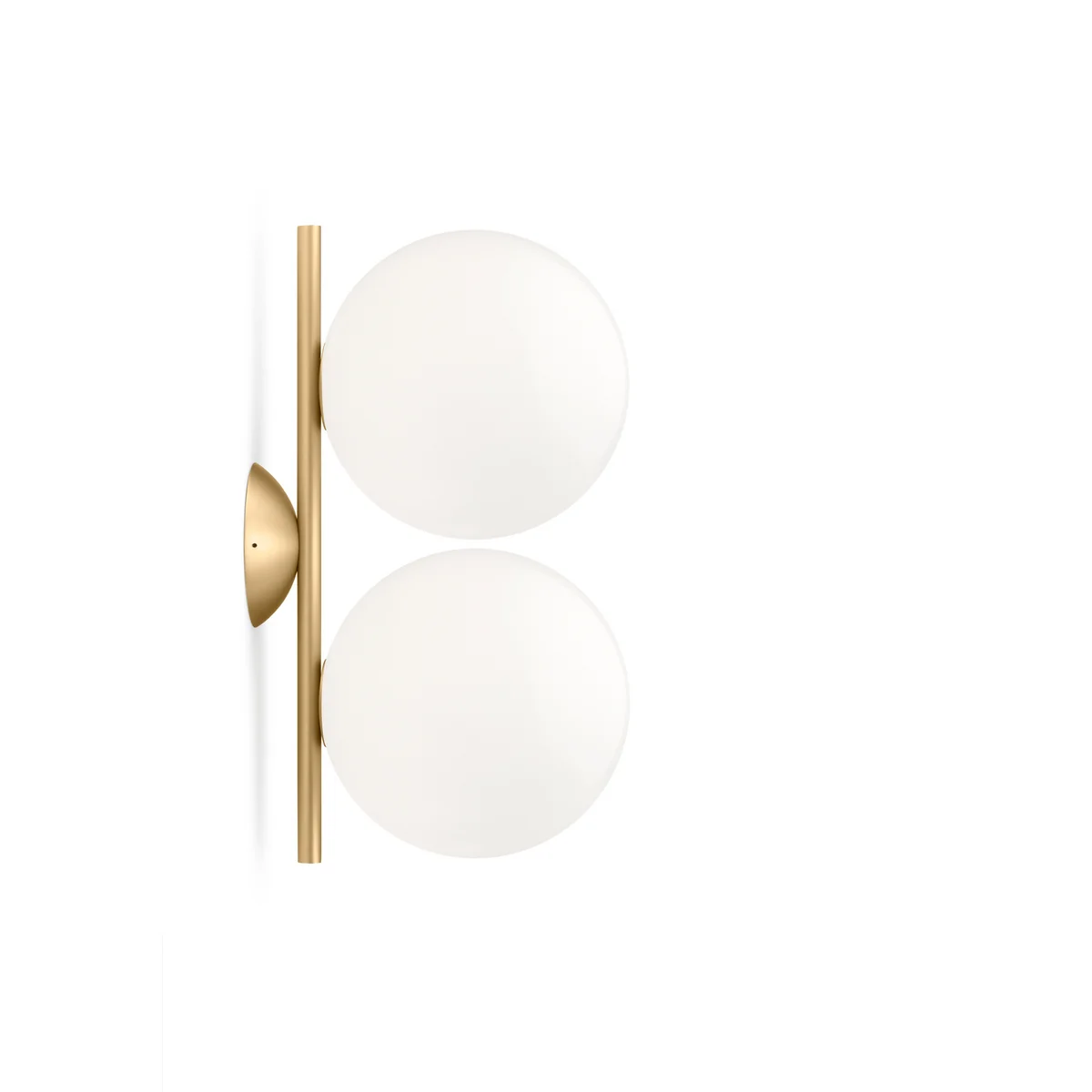 Les deux diffuseurs de la lampe sont en verre opale soufflé à la bouche, le cadre est en laiton ou en acier. L'IC DOUBLE est disponible en deux versions et plusieurs couleurs.
