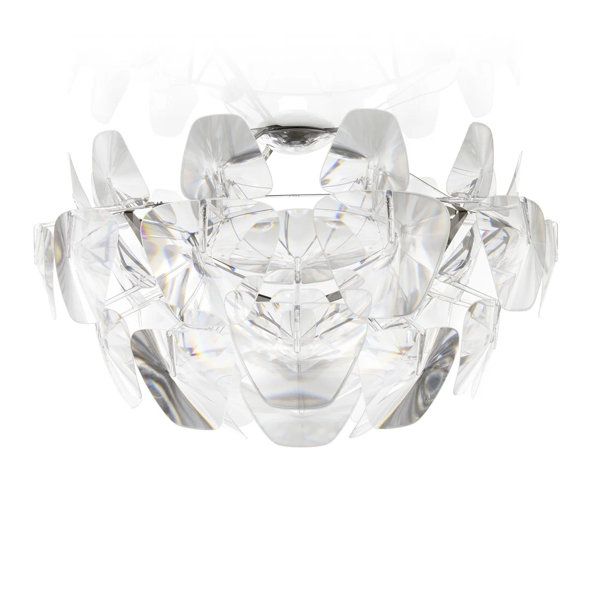 Le plafonnier a été décoré du prix design Compasso d'Oro en 2011 pour l'utilisation novatrice des lentilles de Fresnel et sa lumière délicate.