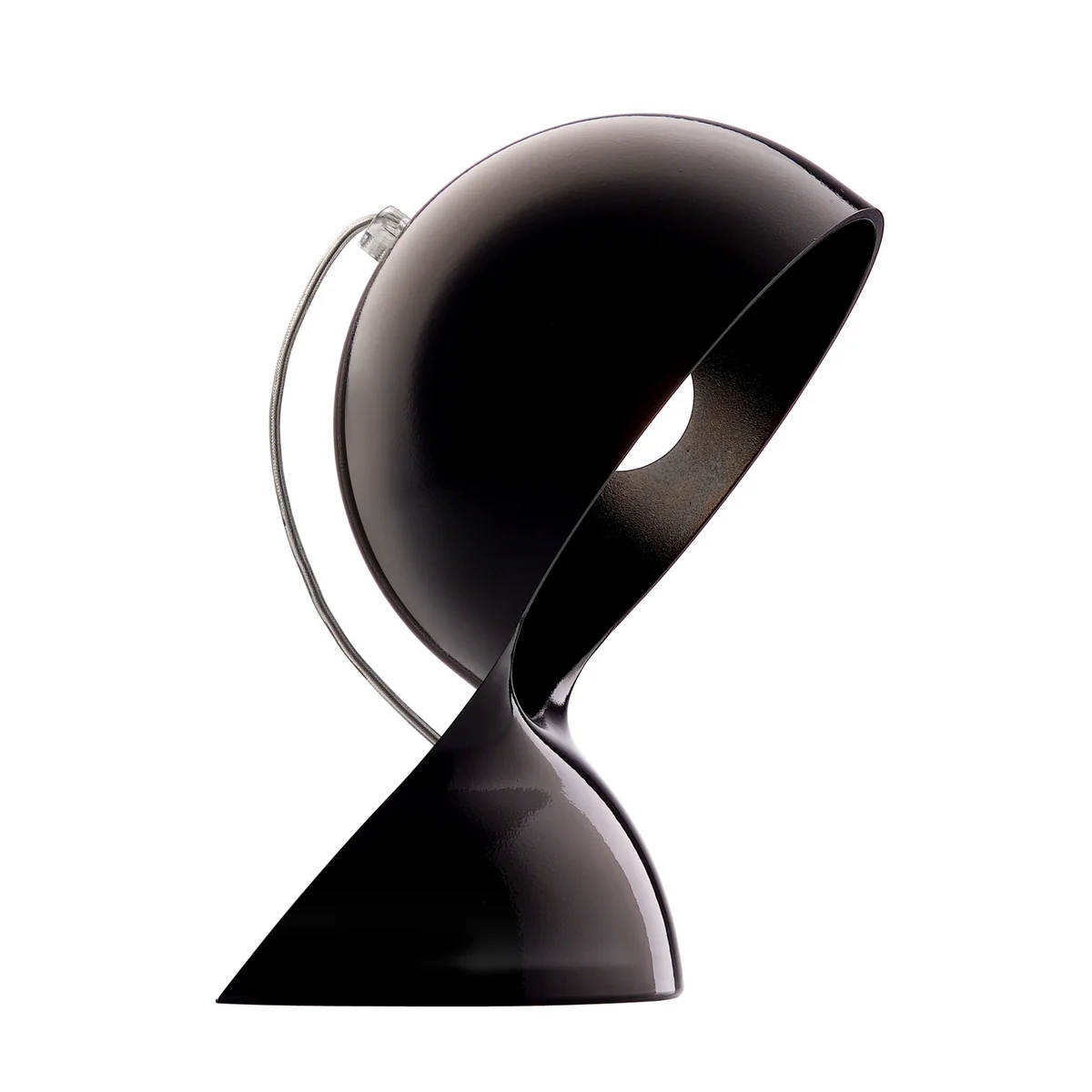 La forme incurvée de la lampe est fabriquée en matériau thermoplastique selon le processus de moulage par injection, ce qui lui confère sa surface sans couture. Dans l'ensemble, la lampe de table Dalù se caractérise par son aspect géométrique avec le demi-cercle frappant, dans lequel la lampe est visible dans le cadre de la construction. La lampe fournit une lumière directe, qui est utilisée pour lire ou travailler, mais peut aussi - si le côté ouvert est tourné vers le mur - éclairer indirectement la pièce en pénétrant doucement dans le boîtier, en particulier dans les versions transparentes.