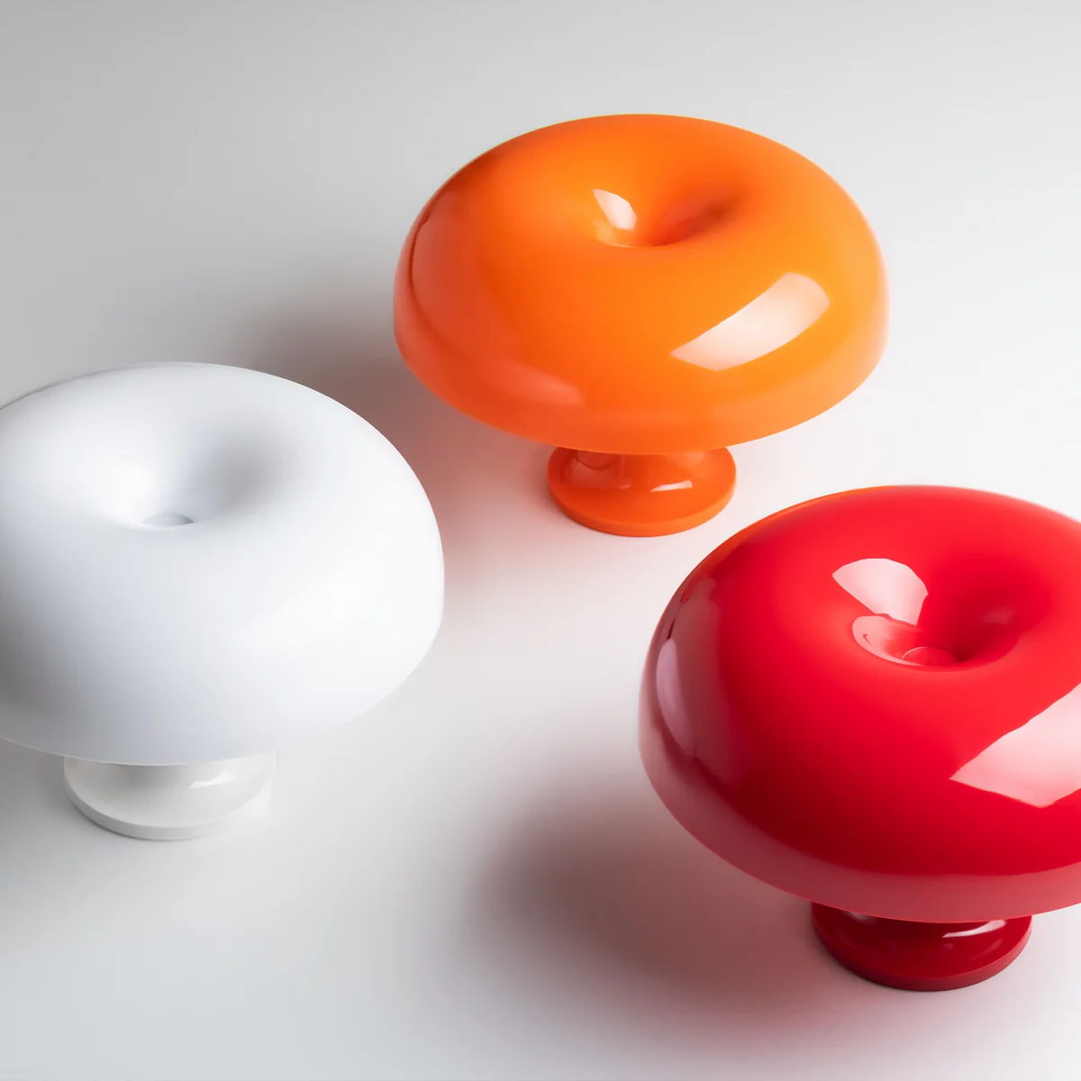 La lampe de table classique Nesso a été récompensée dès 1965 par le prix 1. lors d'un concours de design à Milan. La nouvelle interprétation Nessino exprime avec brio l'esprit moderne des années 1960. Le design arrondi et organique de la lampe suscite des associations avec un champignon.
