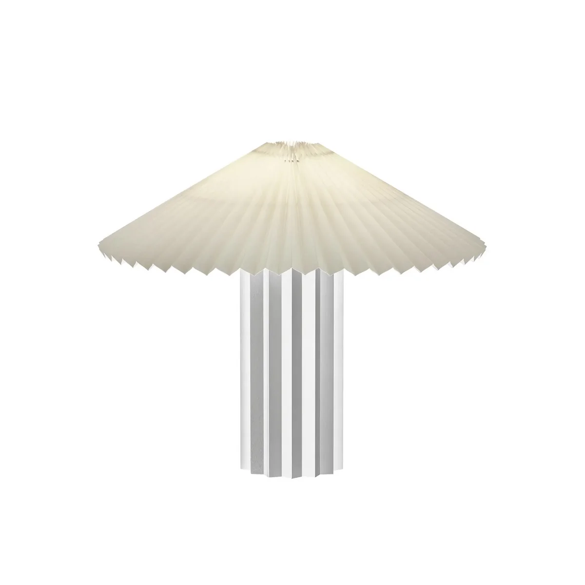 La lampe de table Taite de Blomus , conçue par la designer allemande Theresa Rand, interprète l'art du plissé de manière moderne. Son abat-jour en tissu plissé capture l'harmonie de la douceur et de la structure, tandis que le socle en aluminium, avec sa forme plissée, reflète subtilement le tissu. L'interaction des matériaux et des textures confère au luminaire une présence gracieuse et intemporelle.
