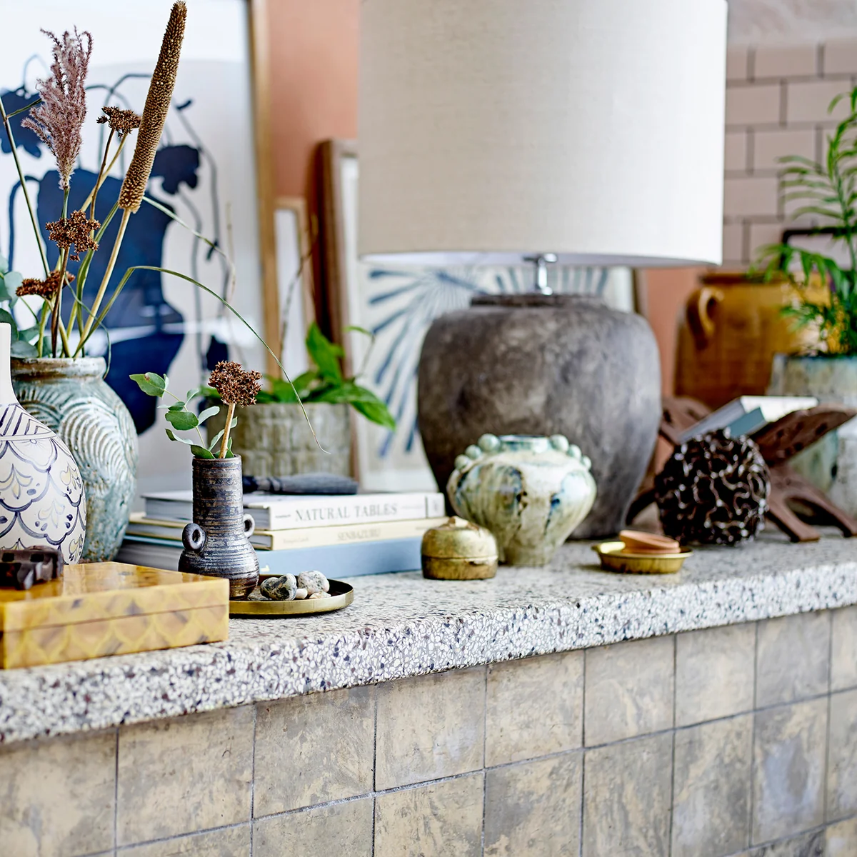 La lampe de table Isabelle de Bloomingville est fabriquée avec un beau pied en grès dans un look vintage rustique.