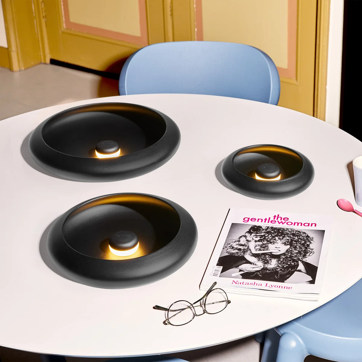 Le Oloha se compose d'une coque métallique et d'une lampe magnétique qui s'insère facilement dans la coque. Le résultat est un éclairage unique qui plonge chaque pièce dans une ambiance chaleureuse et accueillante. La lampe de table ou l'applique murale à intensité variable est disponible dans une grande variété de tailles et de couleurs.