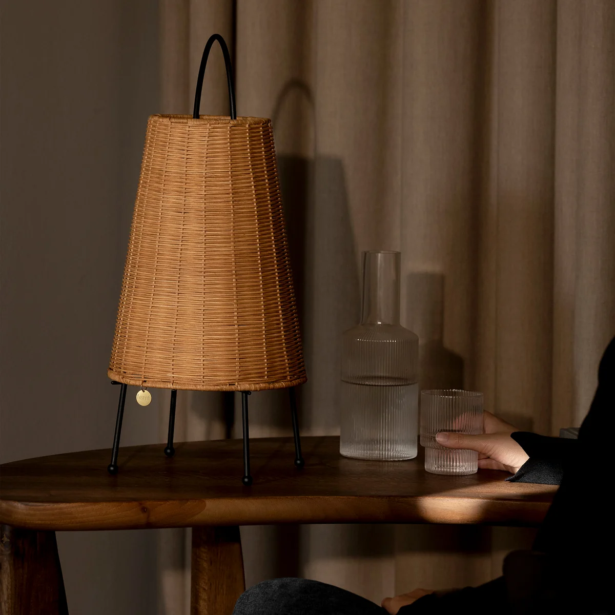La lampe Porti Lampe de table LED en rotin de Ferm Living est une interprétation moderne de la lanterne classique. La lampe portable peut être placée de différentes manières et est fabriquée en rotin tressé avec un pied en fer revêtu par poudre et un dôme LED. Porti offre une lumière douce et chaude qui garantit des moments de bien-être confortables. Grâce à la fonction Hover-Touch du pied de la lampe, l'intensité lumineuse peut être réglée par simple effleurement. De même, il suffit d'effleurer la lampe LED pour l'allumer ou l'éteindre. Porti La lampe peut même être installée sur des surfaces inégales grâce à ses pieds réglables.