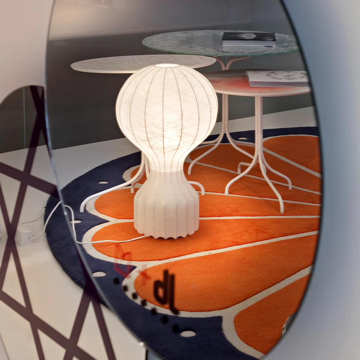 La lampe de table Gatto a été conçue dès 1960 par Achille Castiglioni et sa forme volumineuse fait penser à une montgolfière. La base de cette lampe extravagante est constituée d'une structure en acier laqué qui est clairement visible, surtout lorsqu'elle est allumée, et qui crée un jeu d'ombre et de lumière unique. La structure est enveloppée d'une sorte de revêtement cocoon en fibres de résine synthétique, à travers lequel la lumière est diffusée en douceur dans la pièce, sans éblouissement.