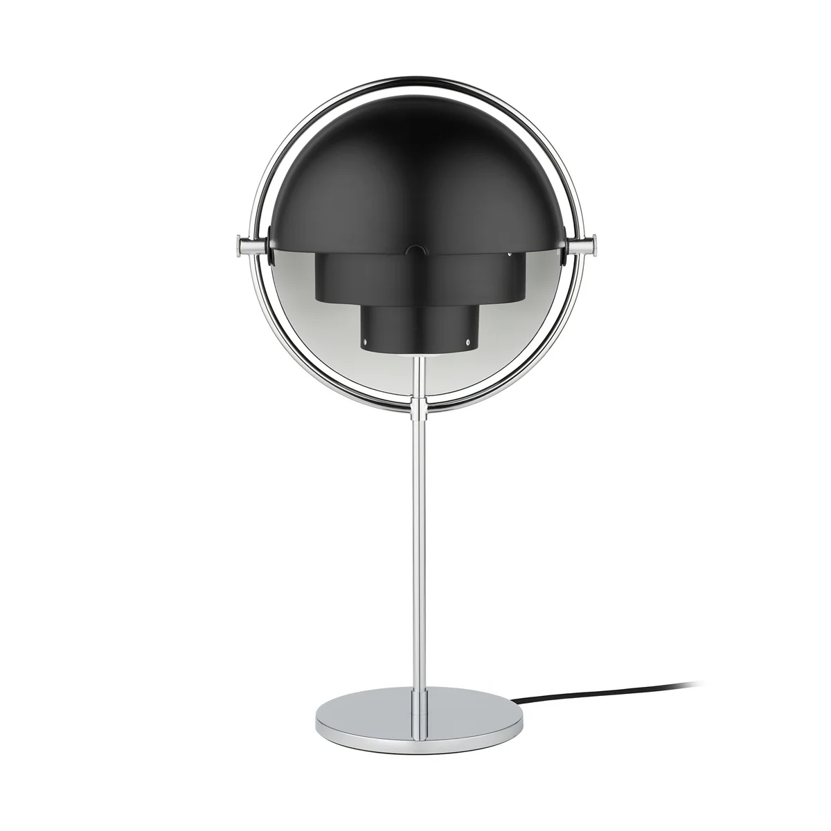 Le Multi-Lite La lampe de table de Gubi se caractérise par ses différentes possibilités de configuration, qui sont dues à la conception de l'abat-jour. Avec son élégance intemporelle et ses caractéristiques décoratives, la lampe de table semble presque sculpturale. Deux formes cylindriques forment la base de l'abat-jour, tandis que deux abat-jour quart de sphère sont librement réglables. La construction est maintenue en place par un anneau métallique. En raison de la flexibilité de la disposition des ombres, la lumière est toujours dirigée dans différentes directions, de sorte qu'elle rayonne soit vers le bas, soit vers le haut, soit sous forme de lumière artificielle asymétrique. Le luminaire s'adapte ainsi à tous les usages et peut fonctionner à la fois comme lampe de travail sur le bureau et comme lumière d'ambiance sur le buffet.