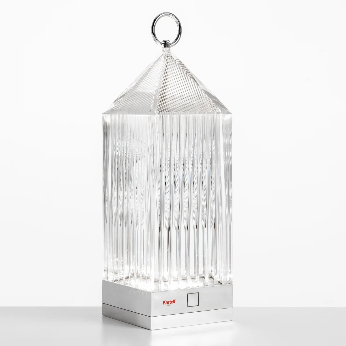La lampe LED Lantern de Kartell est un compagnon à la fois élégant et pratique qui indique le chemin dans l'obscurité. La lampe sans fil en forme de lanterne classique peut être utilisée à l'intérieur comme à l'extérieur et est facile à transporter grâce à sa poignée. Le designer italien Fabio Novembre a eu l'idée de cette lampe portable, qui est l'expression de son expérience personnelle.